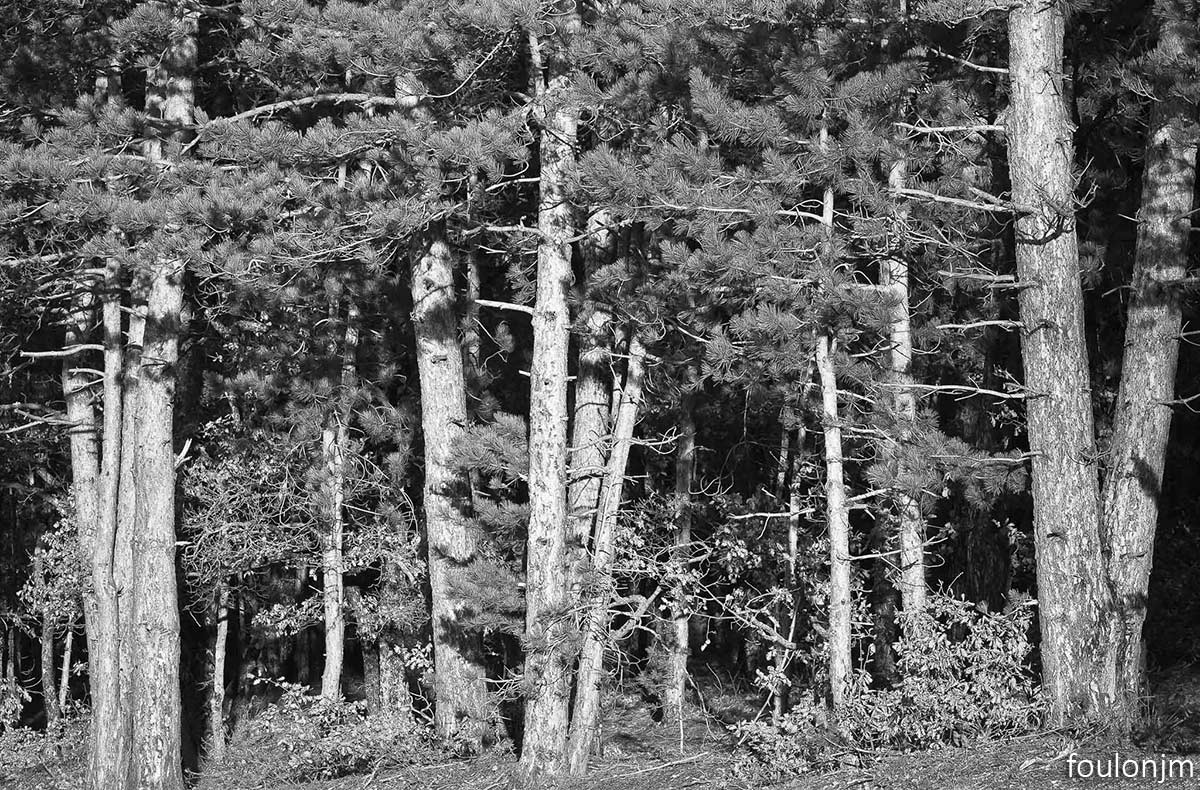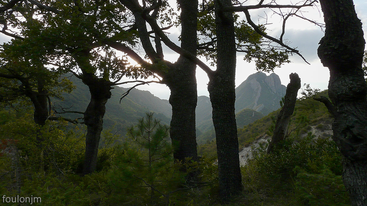 Sous bois de chênes blancs à contre-jour vers Upaix