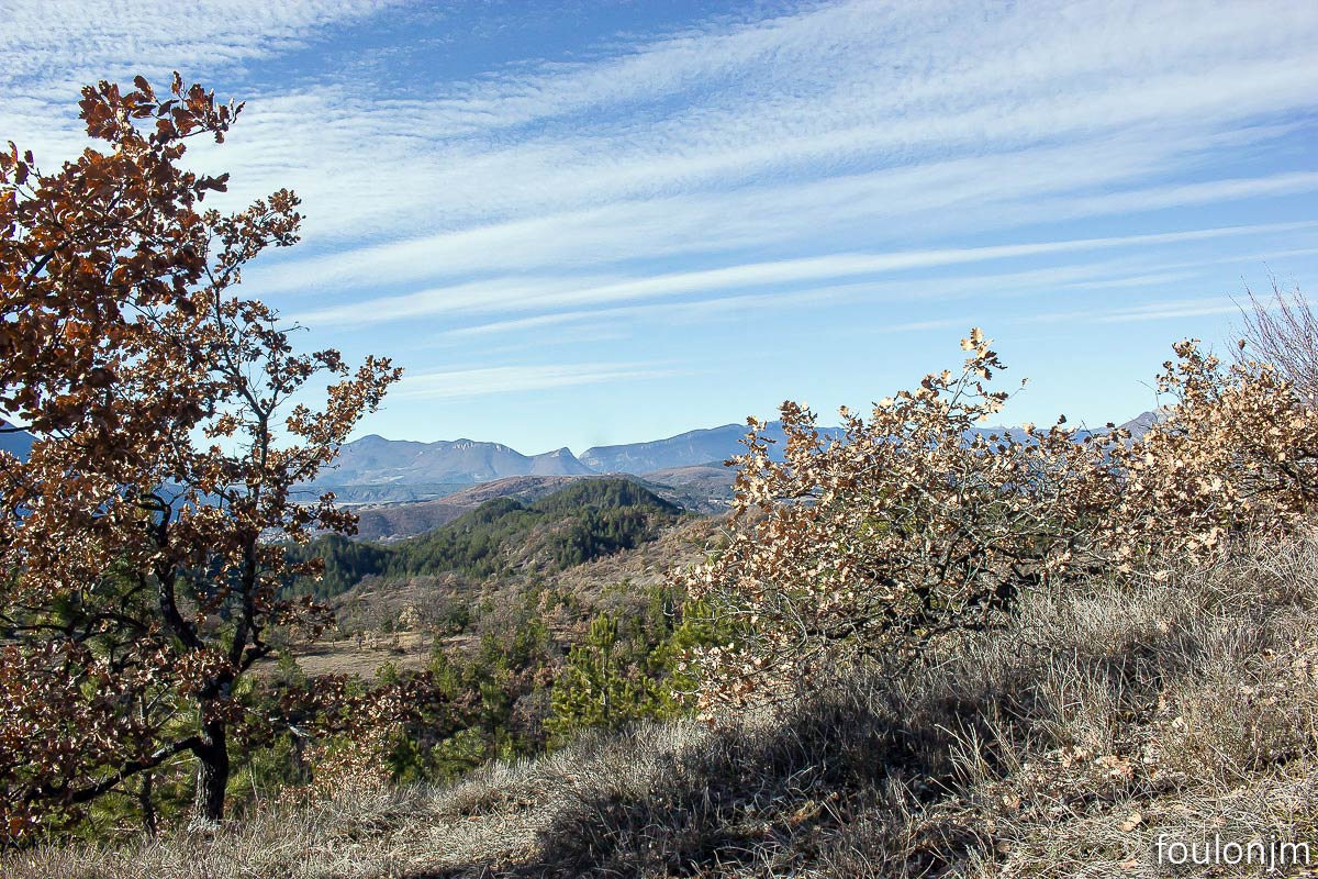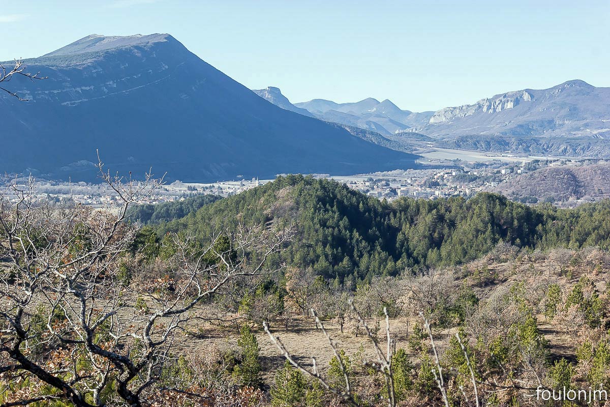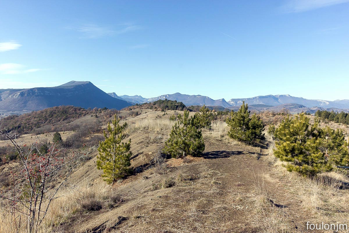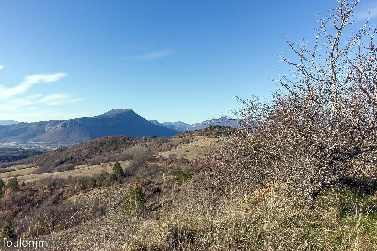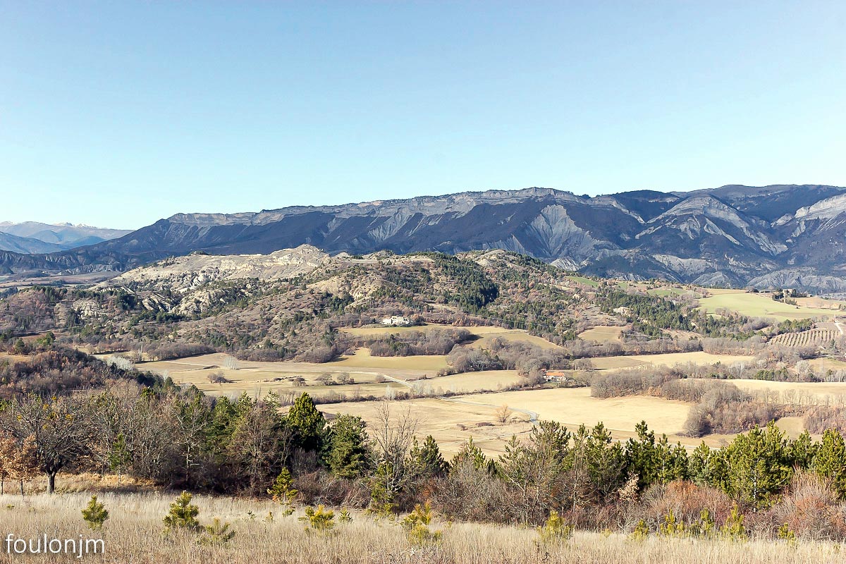 Vues vers l'Est. Au loin vers la gauche, la montagne de Chabre ...