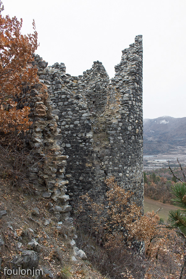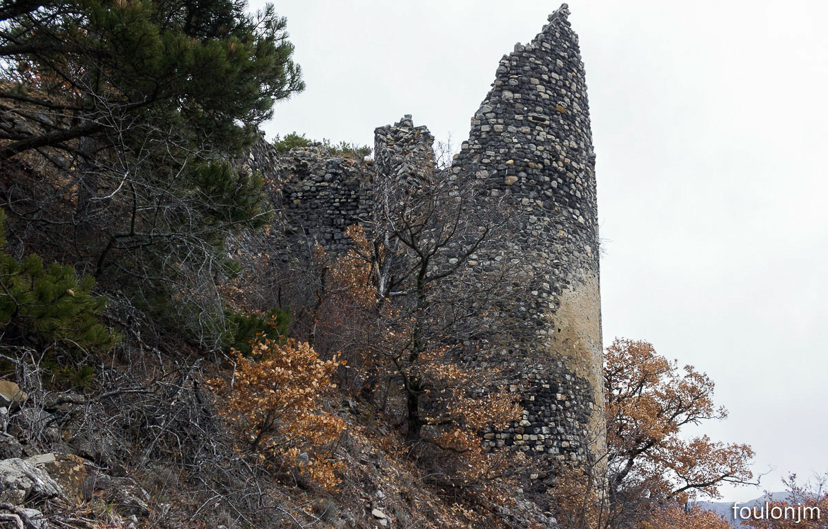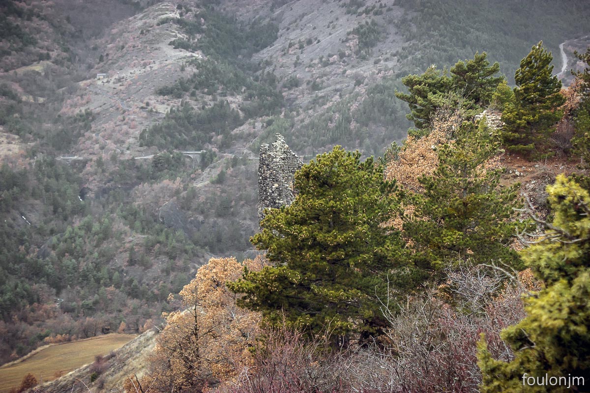 15La Chastelas - Vitrolles Hautes-Alpes (XIIe - XIVe) Tour Nord et le vestige du rempart qui la reliait à la tour Sud