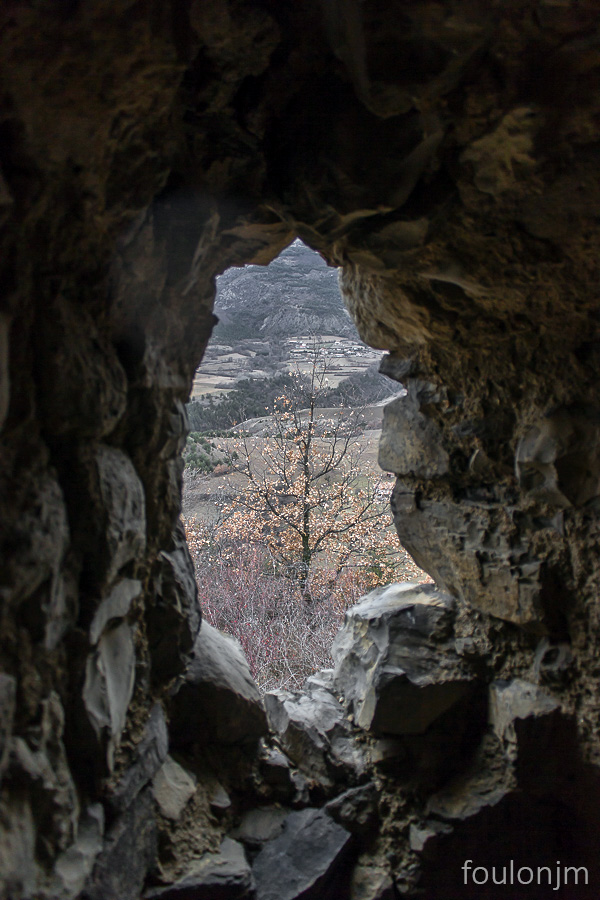 18La Chastelas - Vitrolles Hautes-Alpes (XIIe - XIVe) Vue vers l'Ouest au travers d'une ouverture dans la tour