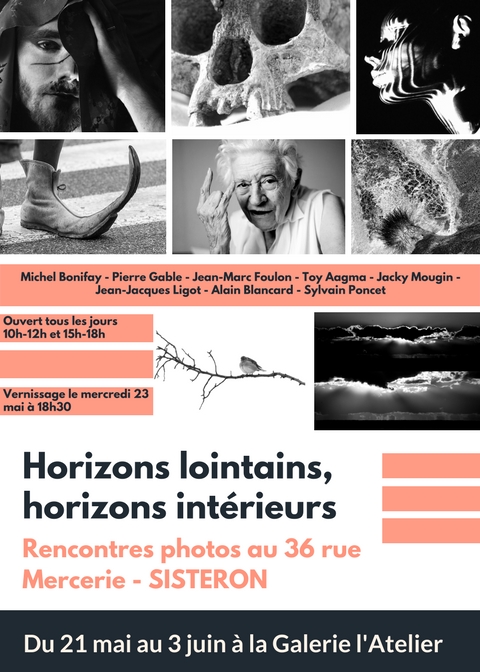 Horizons Lointains - Horizons Intérieurs. Huit photographes sur 3 niveaux du 21 mai au 3 juin 2018 à l'Atelier Sist'art 36, rue Mercerie à Sisteron