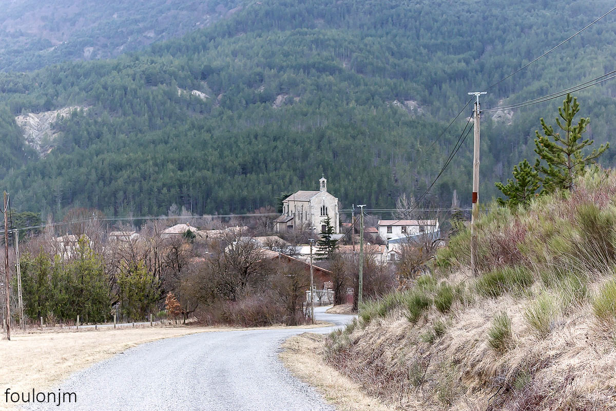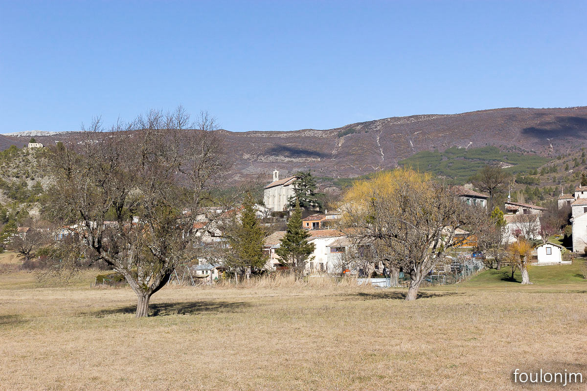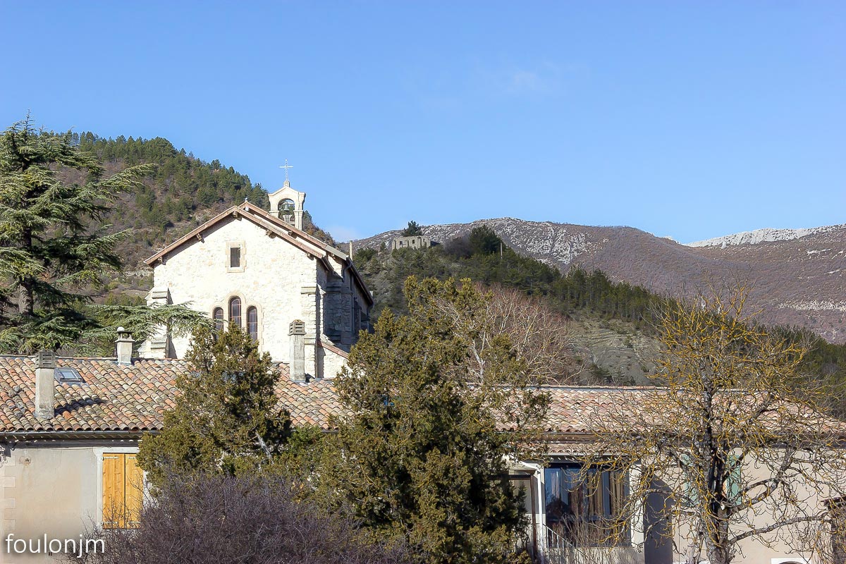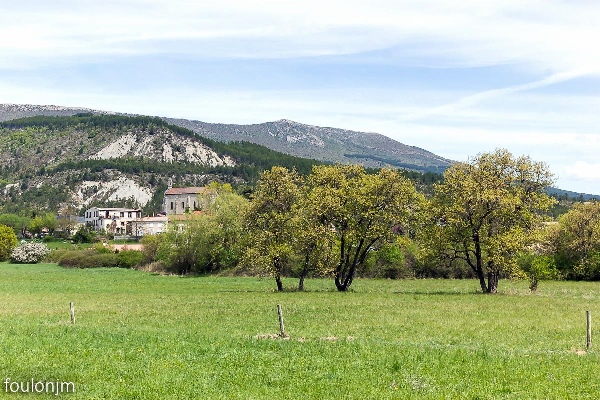 23Barret sur Méouge - Hautes Alpes Au loin, l'église de Barret sur Méouge