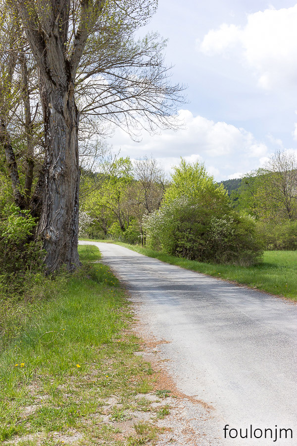 34Barret sur Méouge - Hautes Alpes Début mai 2022 - Le route de l'Ubac qui longe et traverse la Méouge dans le bas du village