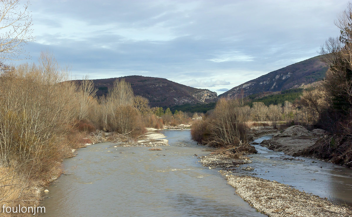 61Barret sur Méouge - Hautes Alpes La Méouge. Au loin, l'entrée des Gorges