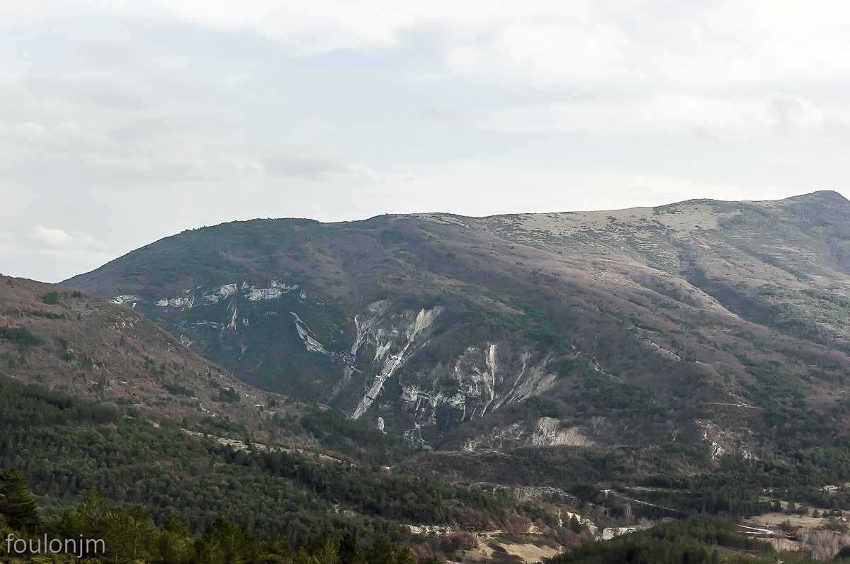 6Barret sur Méouge - Hautes Alpes Vue vers le Sud. Au loin, la montagne de Chanteduc (1542m) au sommet de Fléossier