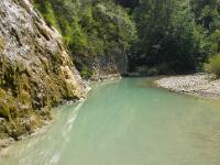 La Méouge prend sa source dans la Drôme à Barret de Lioure dans les Hautes Alpes. C'est un affluent du Buech qu'elle rejoint à Châteauneuf de Chabre. La longueur de son cours d'eau est de 39,6 km. La rivière a formé des gorges naturelles sur près de 7 km dans un calcaire coloré sur un parcours sauvage