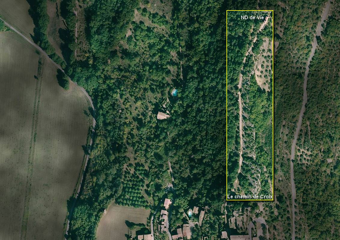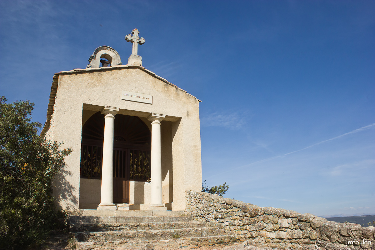 On arrive à ND de Vie, au Nord du village par une allée bordée de quinze oratoires, appelée "Promenade des Evèques". Construite en 1552, elle est relevée en 1662 après avoir été saccagée pendant les guerres de religion. En 1864, on lui ajoute un clocher-mur et un porche néo-classique assez inattendu, avec deux colonnes. Une statue de la Vierge en bois polychrome fait partie du mobilier de la chapelle.
