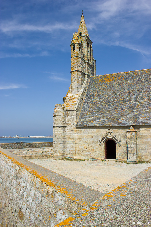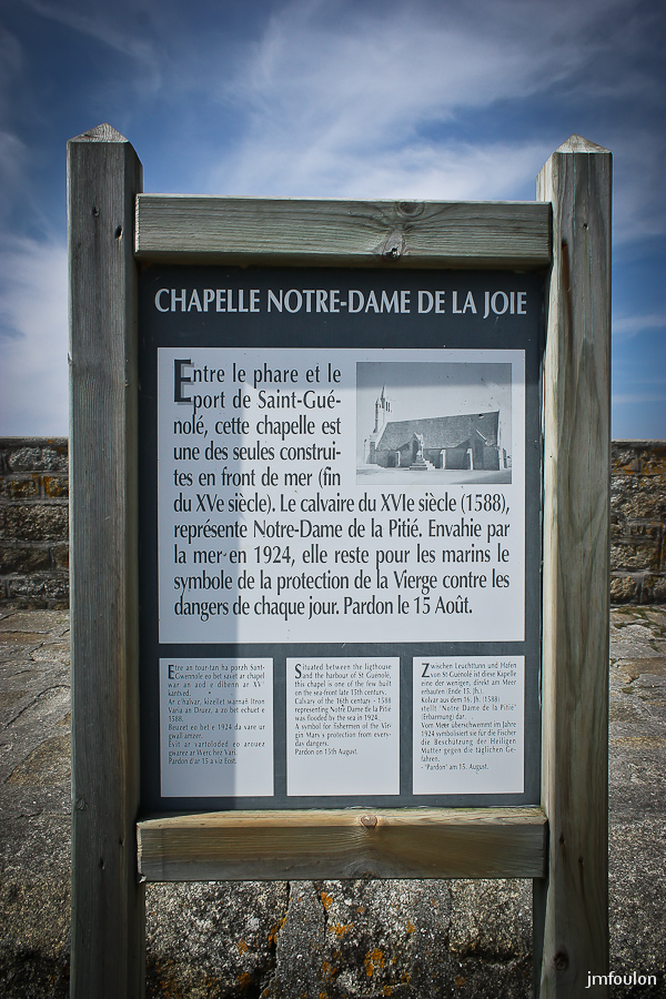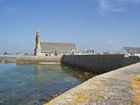 La Chapelle Notre-Dame de la Joie fut construite derrière une digue qui la protège des fureurs de l'ocèan. La tempête de décembre 1896 avait alors arraché les portes, démonté la digue et l’eau envahit la chapelle jusqu’à 50 centimètres de hauteur ! Elle occuperait un ancien site païen consacré à Vénus. Elle forme un plan rectangulaire longé par un étroit appentis côté nord. La façade tournée vers la mer est aveugle et surmontée d’un clocher entre 2 tourelles d’escalier. Le retable du chœur est une œuvre de Jean Le Bosser de 1756. Devant la chapelle, le calvaire est daté de 1588. Elle est un hymne à la joie et à la reconnaissance des marins d’avoir été épargnés ou sauvés de la mer.