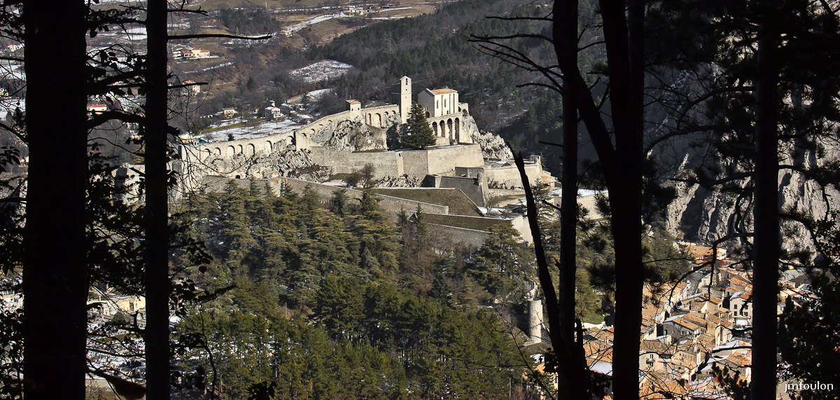 16Sisteron - Le Molard Vue sur la citadelle depuis le sentier du Molard. En bas l'ancien collège et une partie du quartier de la Coste