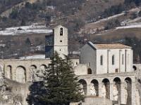 25Sisteron - Le Molard Zoom sur la flèche et le chemin de ronde de Notre Dame des Pommiers (XIIe) depuis le sentier du Molard. En arrière plan, la Durance