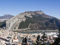 11Sisteron - Le Molard Vue vers l'Est depuis le Molard. A gauche la Baume, au loin les crêtes de Vaumuse. En bas le quartier du Gand et la Durance