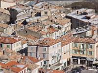 27Sisteron - Le Molard Zoom sur la vieille ville. On devine la rue Droite (basse) et les Quatre coins. A droite, la place Paul Arène