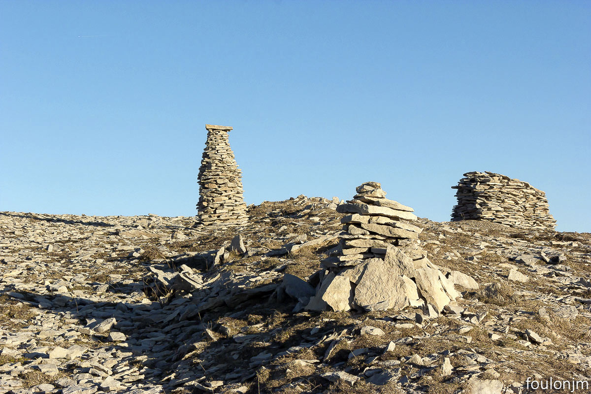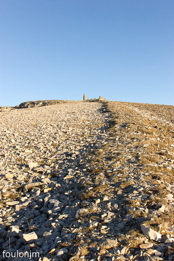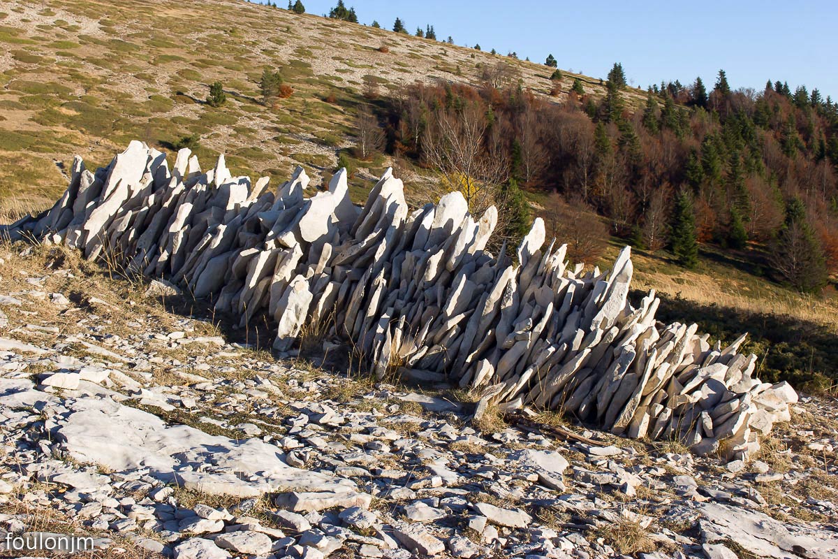 20Crêtes de Lure - Octobre 2017 Les crêtes sont parsemées de pierres calcaires plates appelées lauzes. Ces avec ces pierres qu'étaient jadis construites les bergeries. Ici elles ont certainement été posées sur leur tranche par des randonneurs