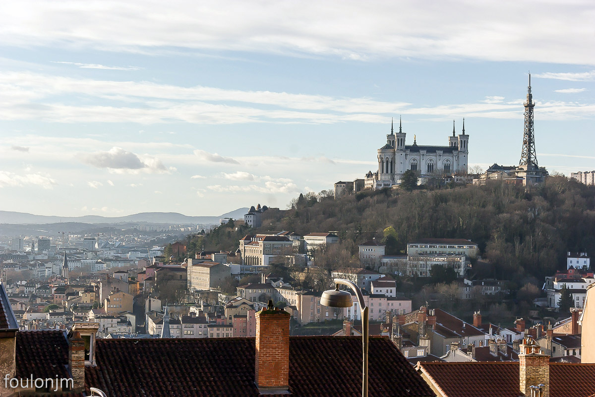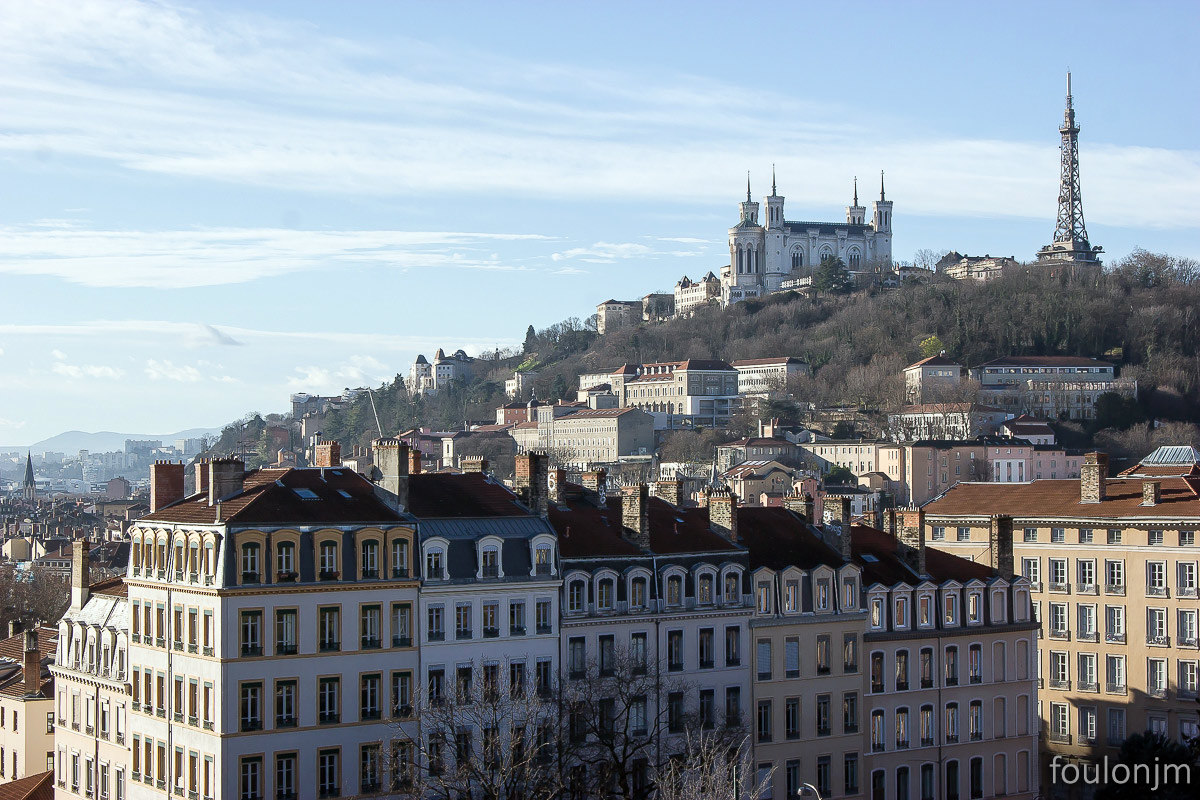 22Lyon - 3 janvier 2024 Lyon - Croix-Rousse - Vue sur ND de Fourvière. A gauche au loin, le vieux Lyon ...