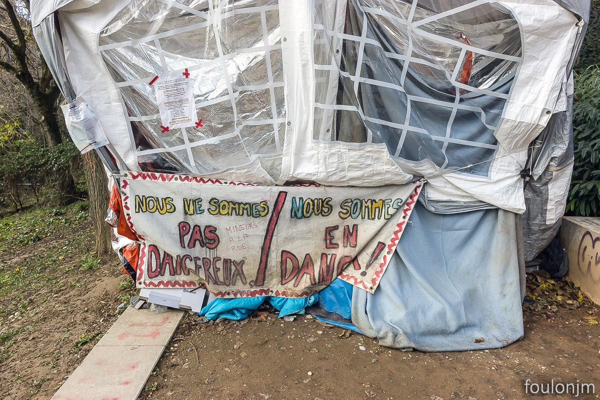 39Lyon - 3 janvier 2024 Lyon - Croix-Rousse - Montée de la Grande-Côte. Ici quelques tentes de migrants sont installées ...