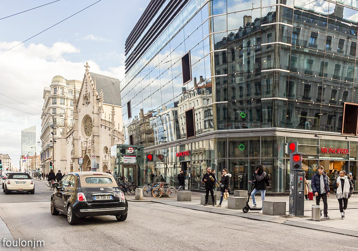 53Lyon - 3 janvier 2024 Lyon - Place des Cordeliers - A droite la structure de verre du Monoprix. Au centre, Le sanctuaire Saint Bonaventure (1327). Cellui-ci était lié au couvent des Cordeliers aujourd'hui disparu ...
