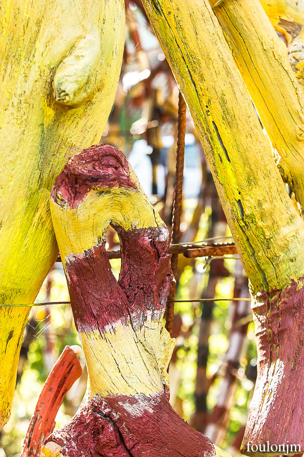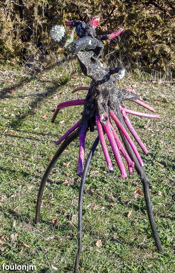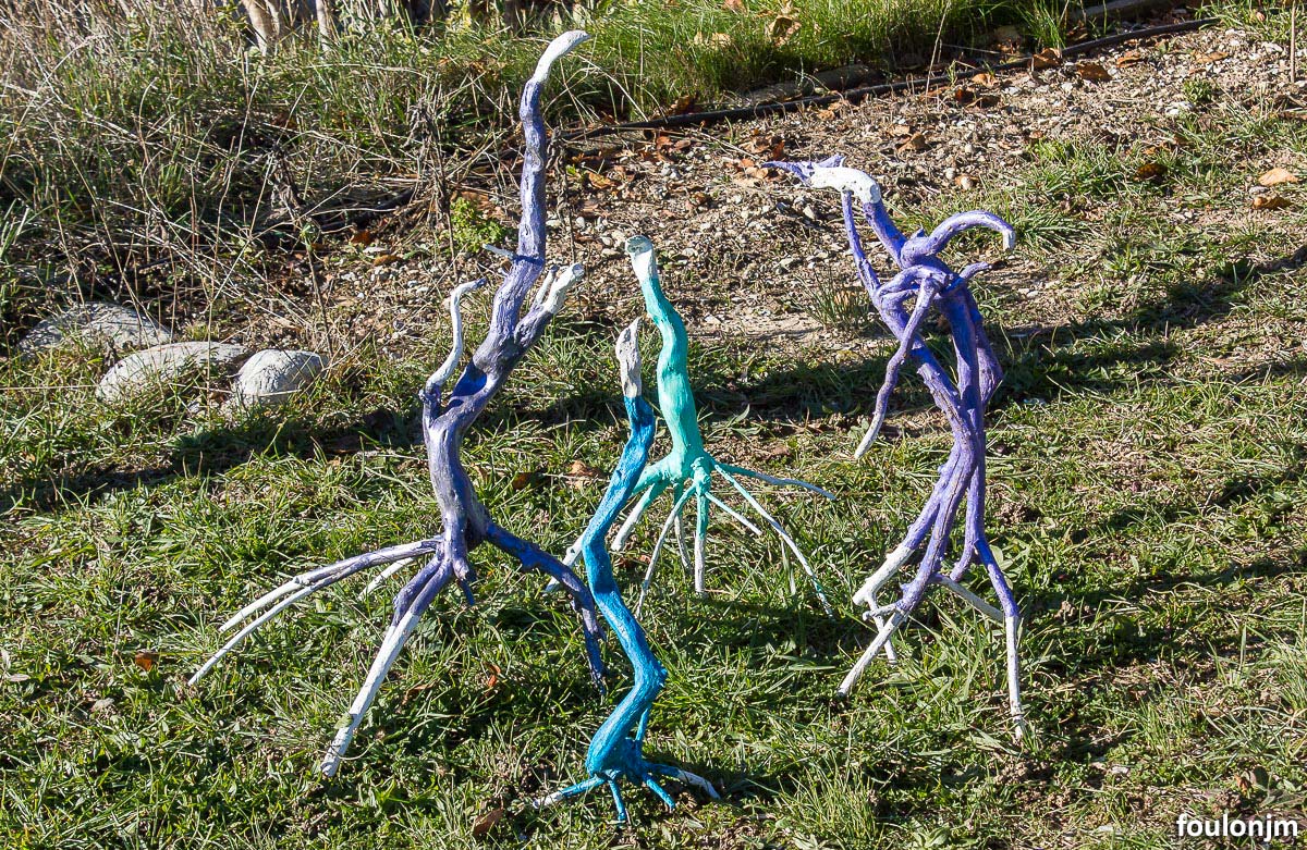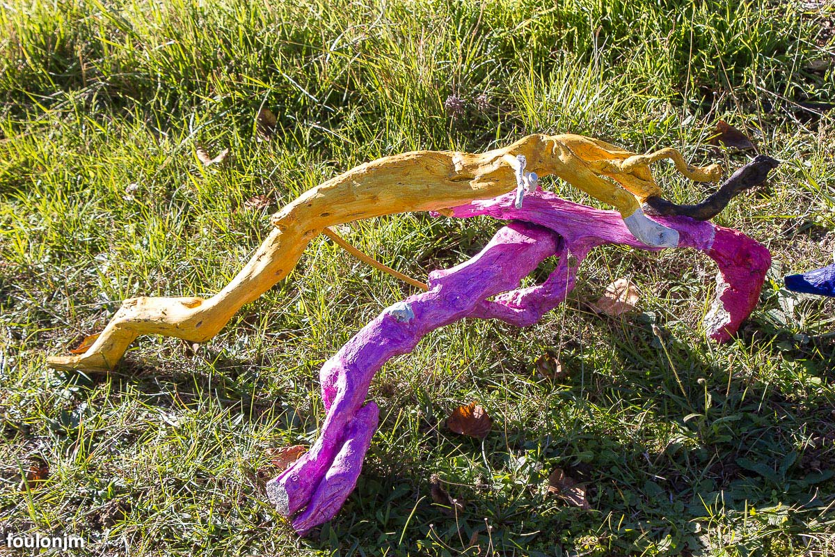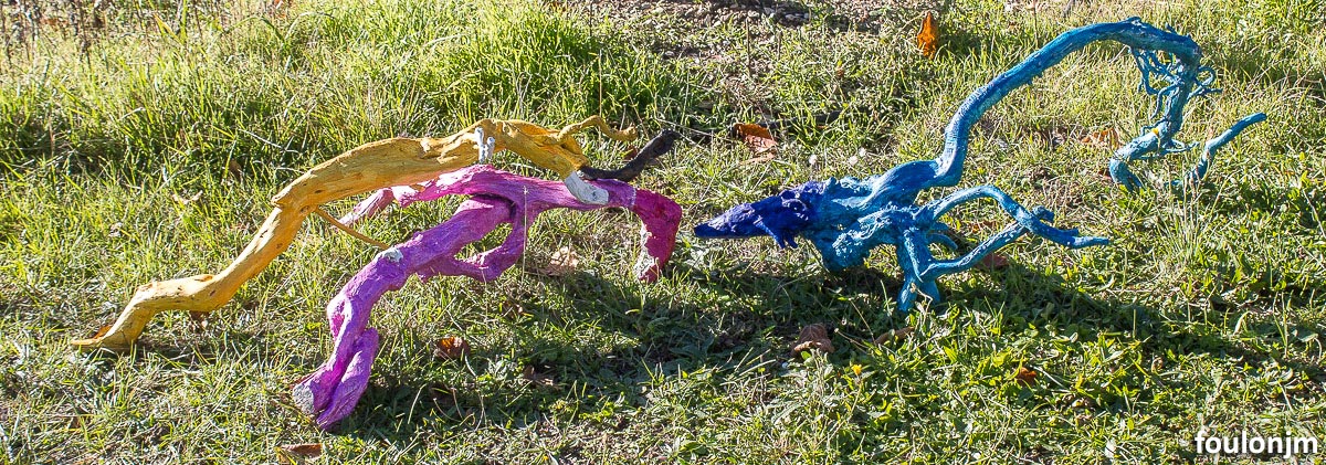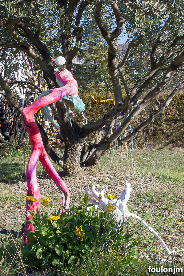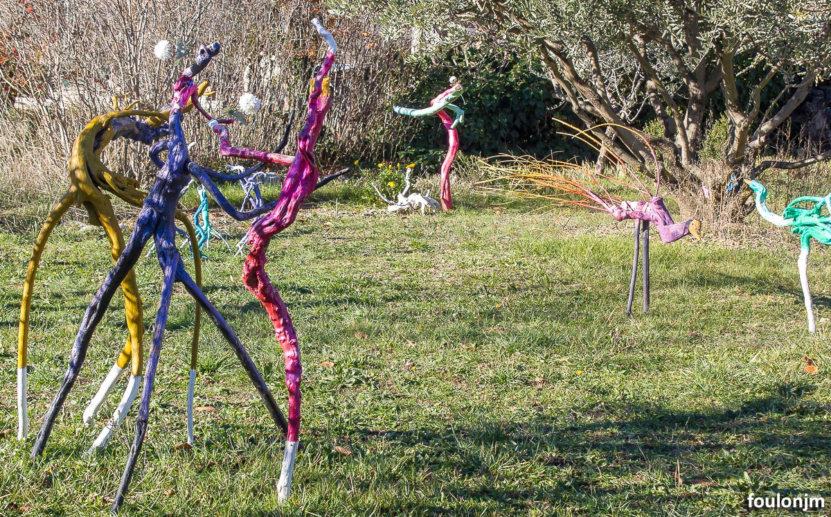 L'artiste peintre Jean-Pierre Marimot se passionne également pour les bois flottés qu'il ramasse lors de balades dans les rivières et torrents. Il les met en scène réhaussés de couleurs dans le jardin de sa maison de Sisteron en Haute Provence.