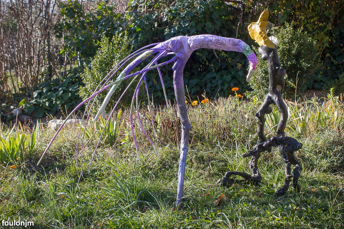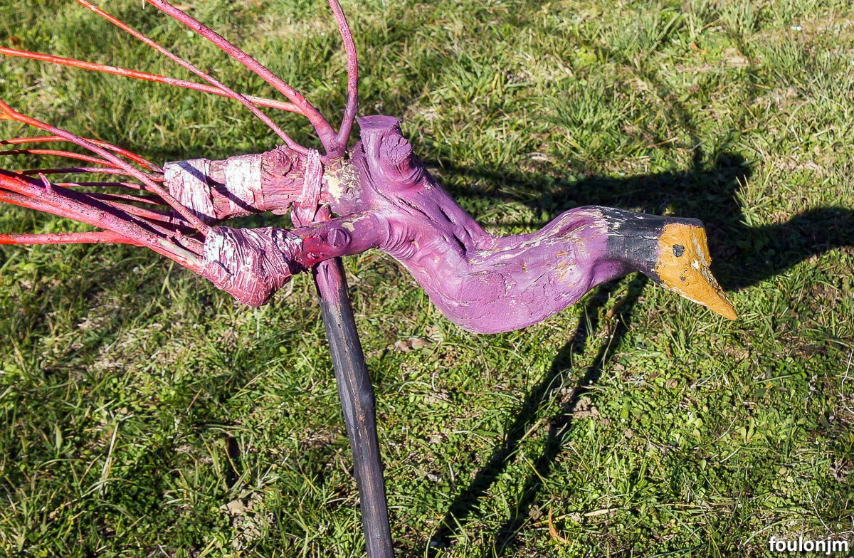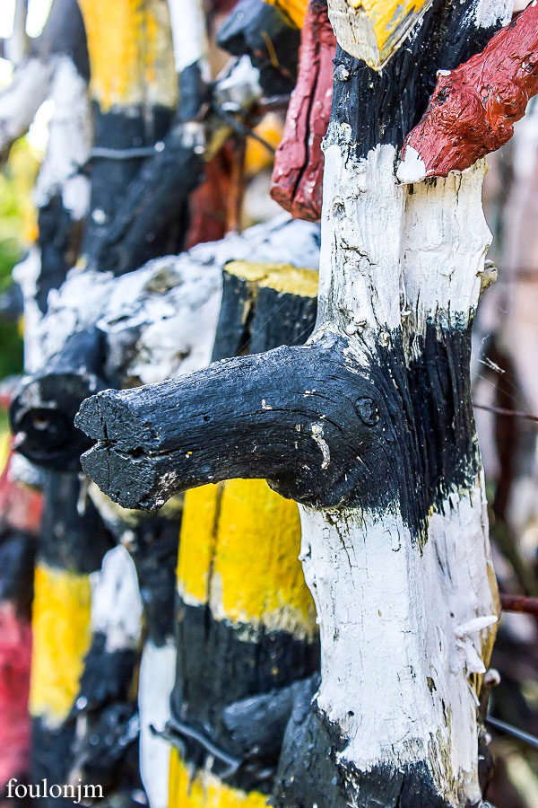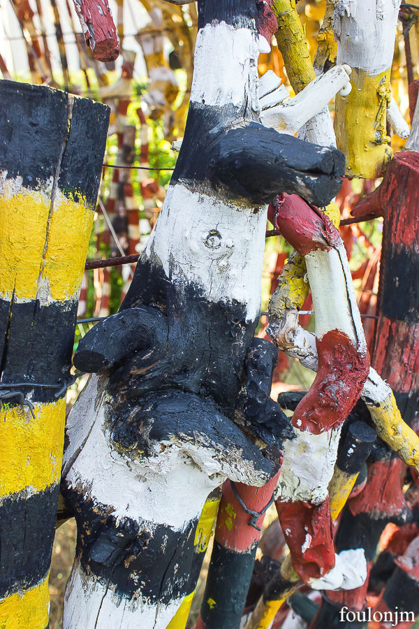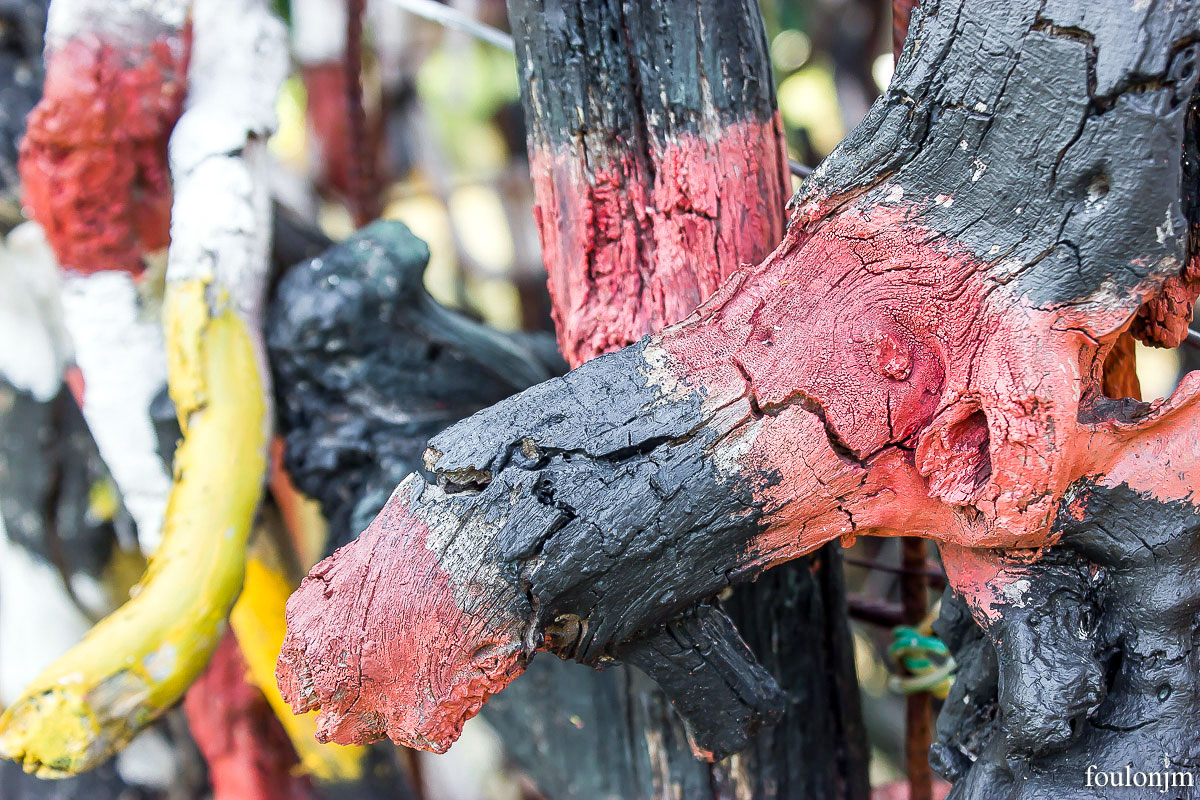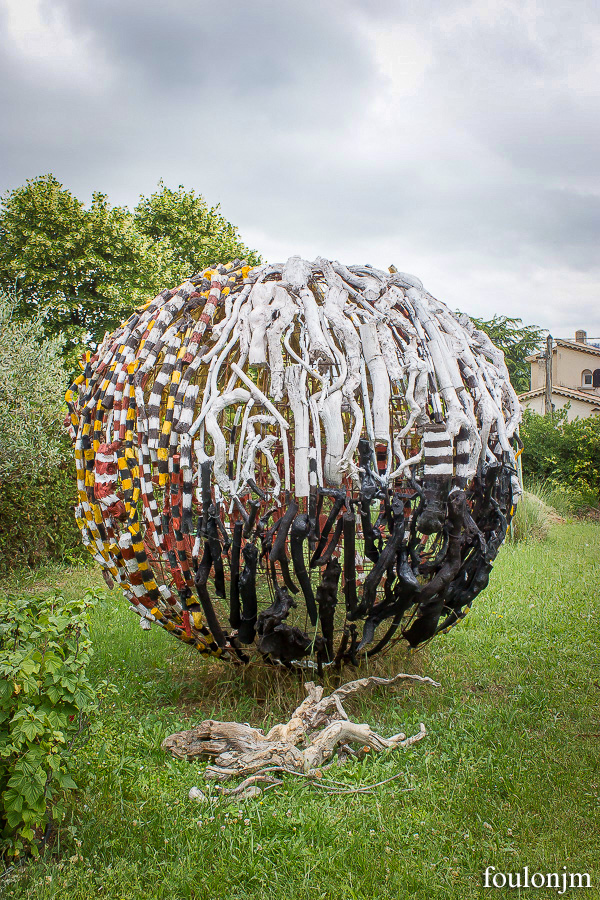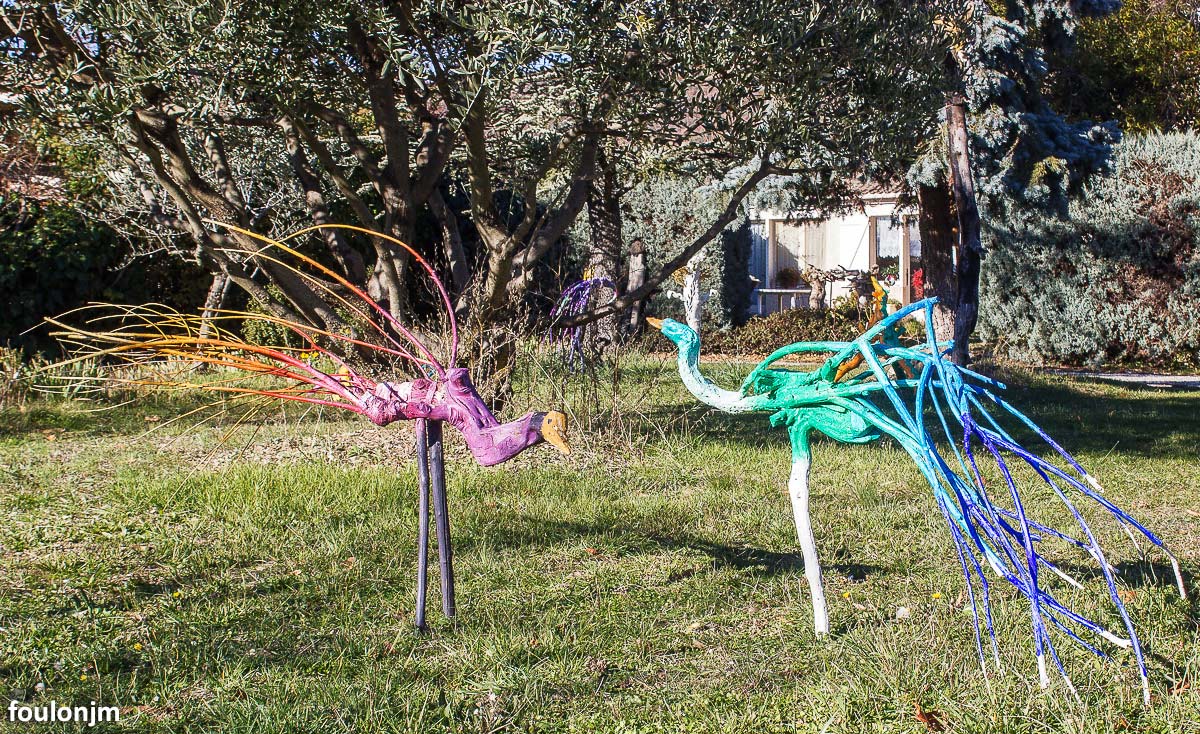 L'artiste peintre Jean-Pierre Marimot se passionne également pour les bois flottés qu'il ramasse lors de balades dans les rivières et torrents. Il les met en scène réhaussés de couleurs dans le jardin de sa maison de Sisteron en Haute Provence.