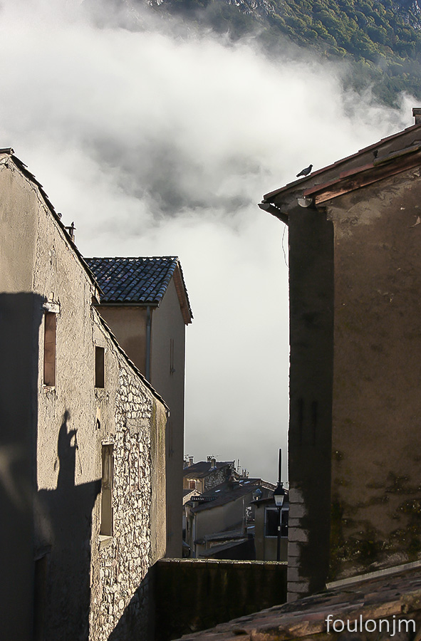 22Photos en vrac ! ... Une sorcière en ombre chinoise sur un mur, un pigeon sur un toit dans les brumes de la vieille ville de Sisteron. L'insolite n'est jamais bien loin lorsqu'on a les yeux ouverts !