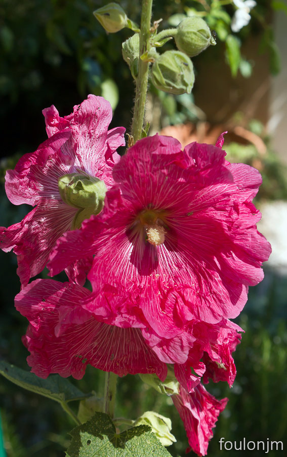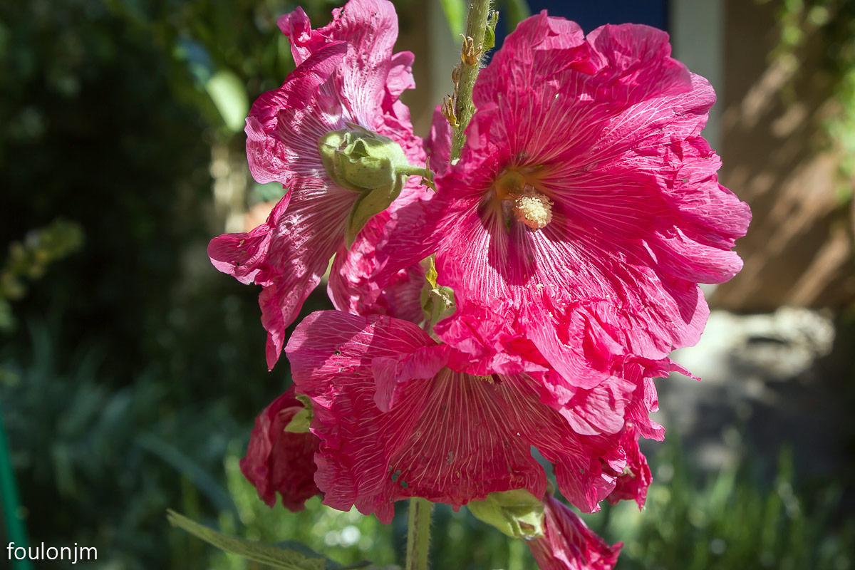 Rose trémière devant une maison à Sisteron, quartier de la Coste 2/2