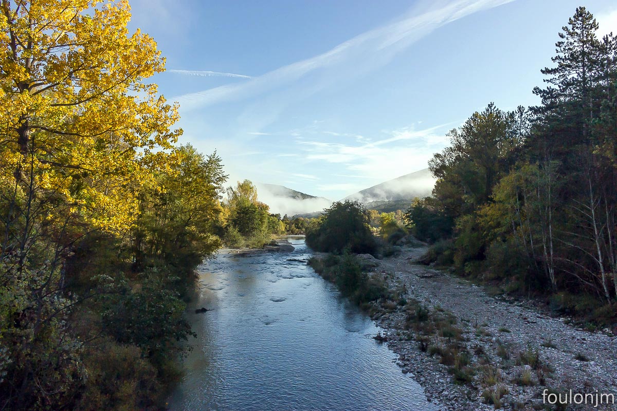 La Méouge à Barret au pont de l'Ubac. Au loin les gorges ...