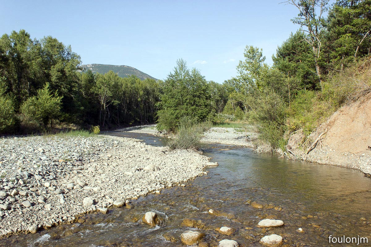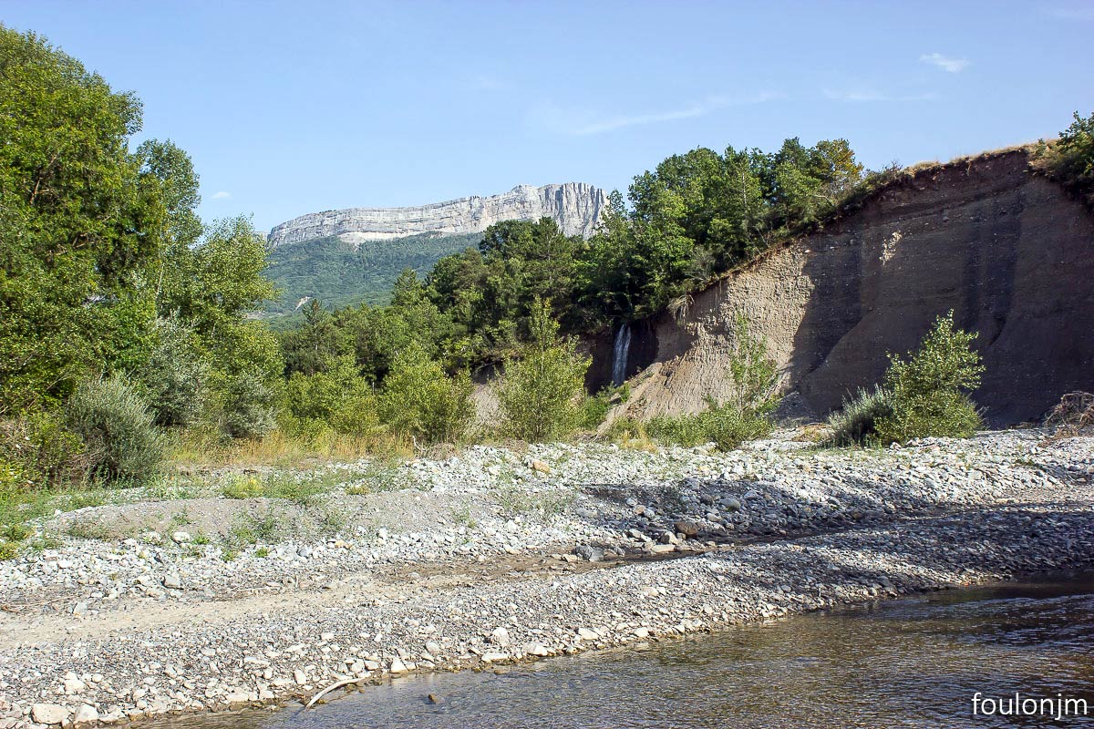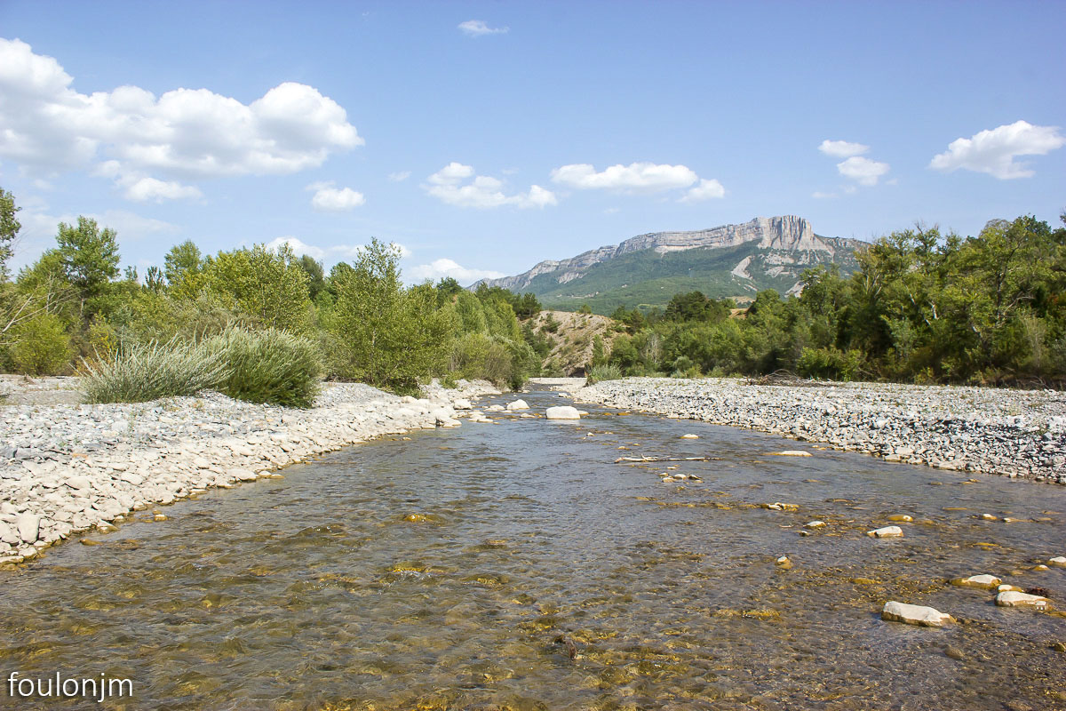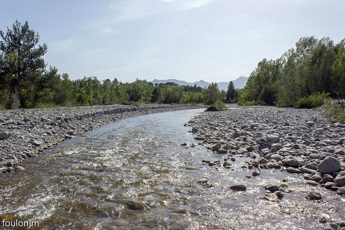 Le lit du Sasse. Au loin à l'Est, la montagne de Gache