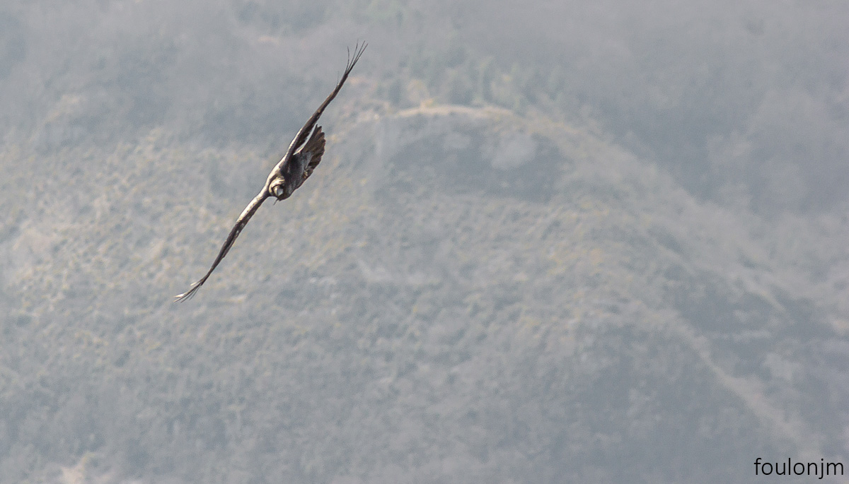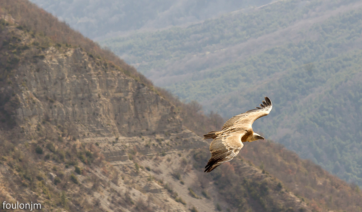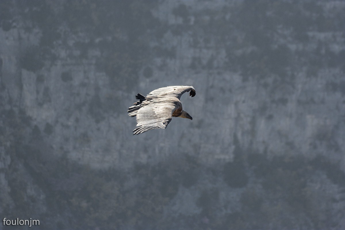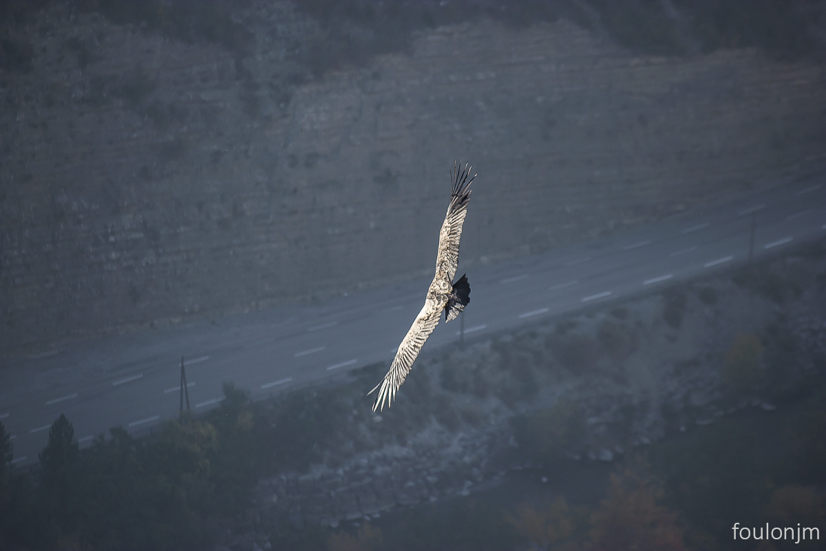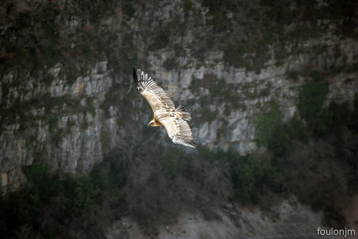 65St May - Col de St May Un vautour rase la falaise ! Pas facile à photographier. Ils volent très vite !