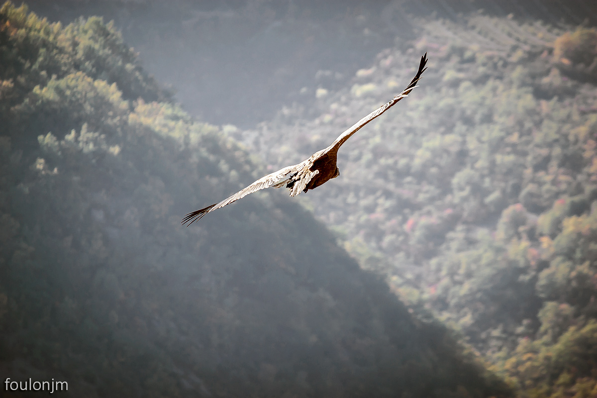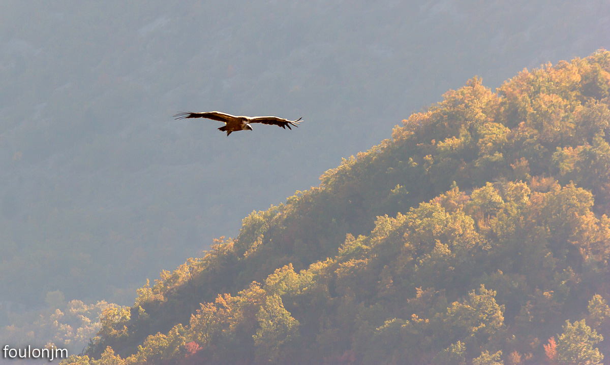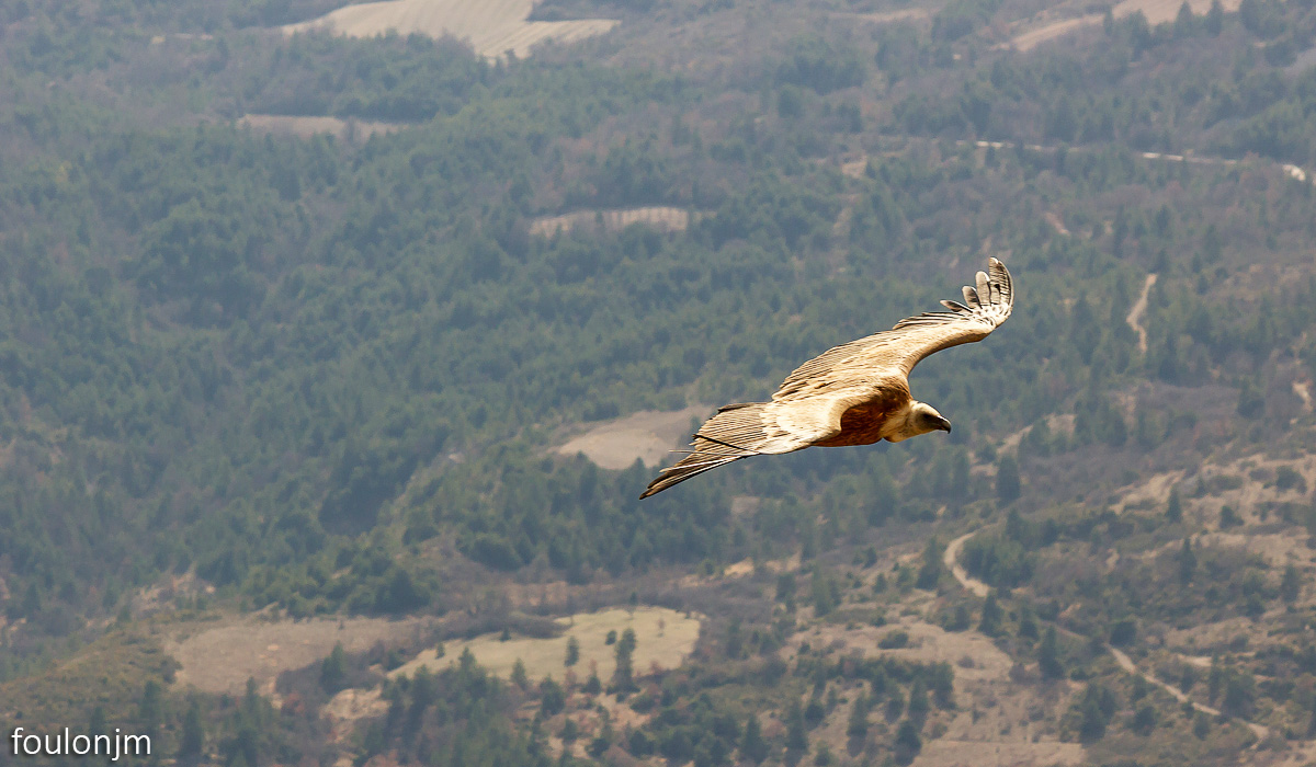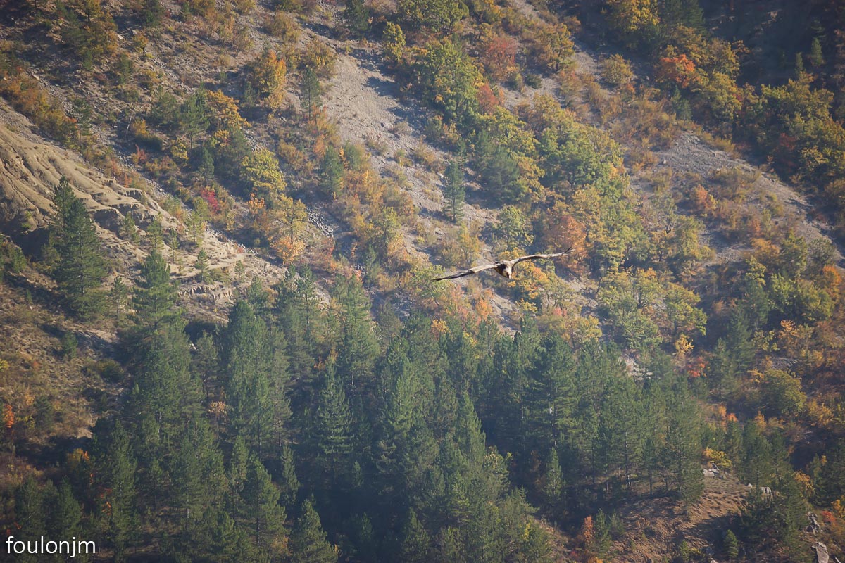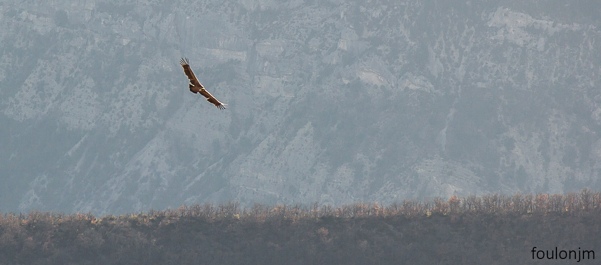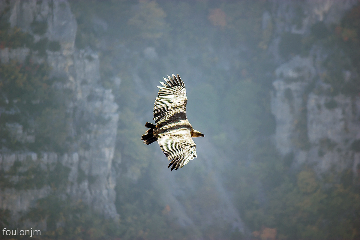 65St May - Col de St May Un vautour rase la falaise ! Pas facile à photographier. Ils volent très vite !