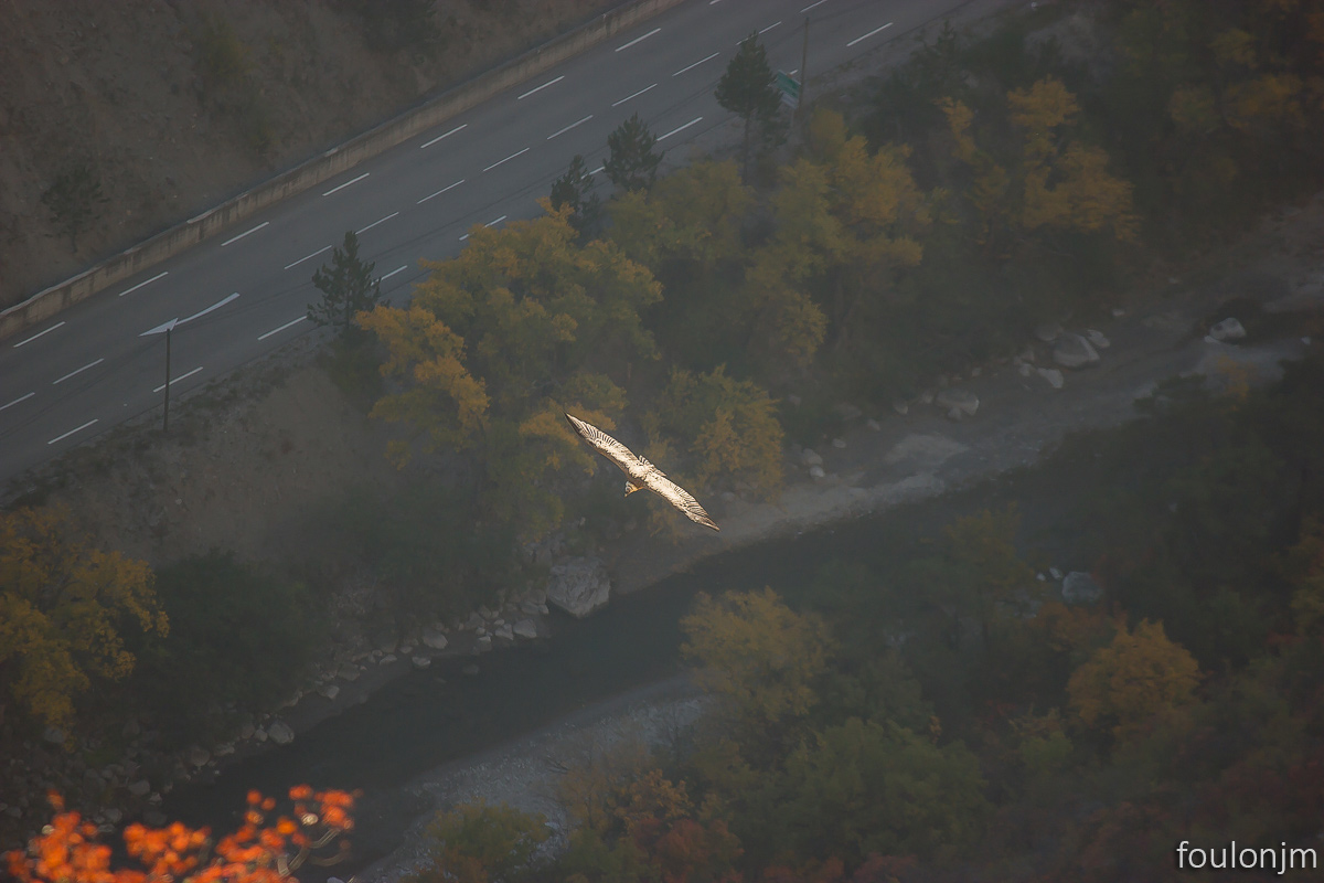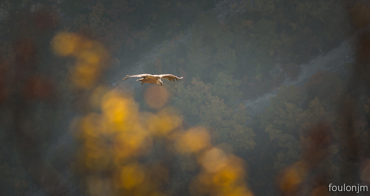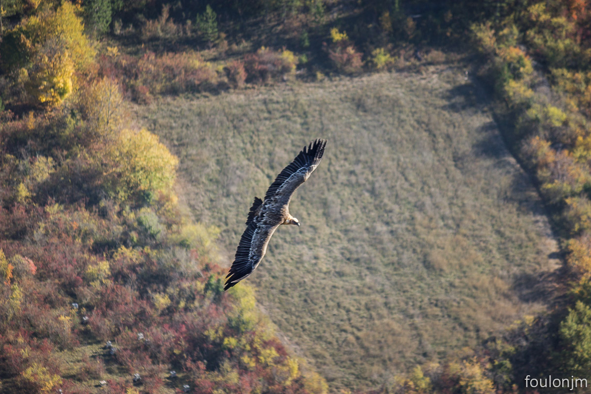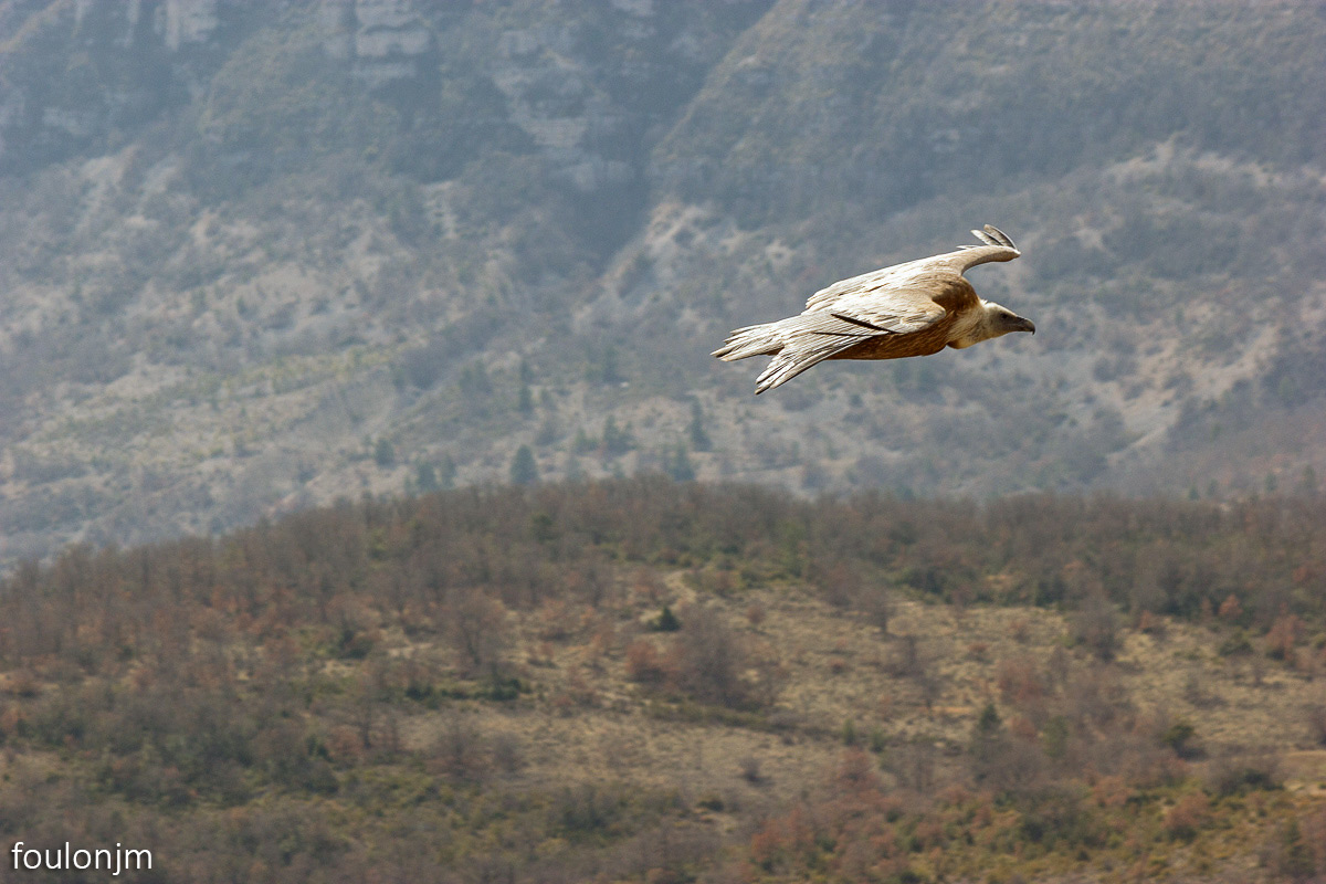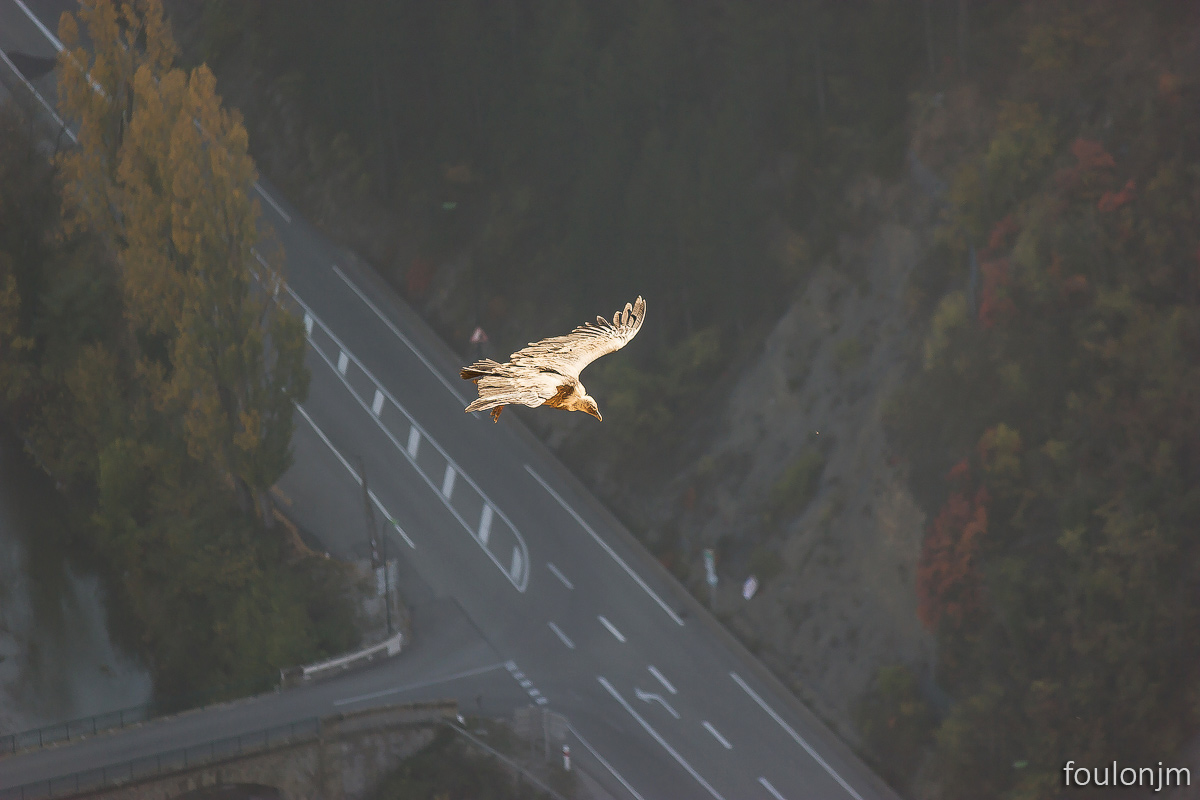 65St May - Col de St May Un vautour rase la falaise ! Pas facile à photographier. Ils volent très vite !