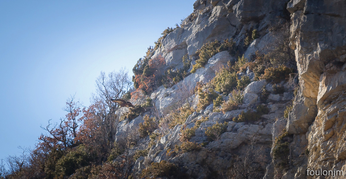 50St May - Col de St May Les falaises de la montagne de Buègues ou nichent les vautours (moines, fauves, percnoptères et le gypaète barbu) Le vautour fauve et le plus présent des quatre