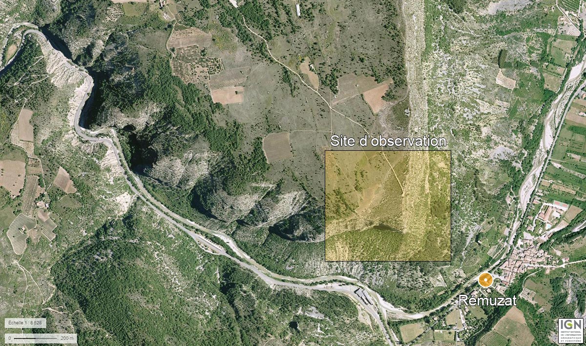 1Rémuzat - Rocher du Caire Carte IGN du 1er site d'observation au Rocher du Caire au dessus de Rémuzat