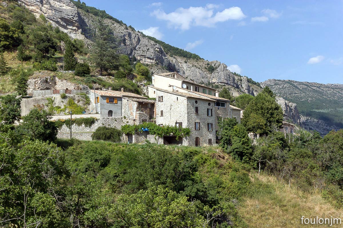 9Saint Génis - 05 Au loin, la montagne de chabre (ubac). A gauche, le lac du Riou. A droite, l'église de Saint Génis vue précédemment. Celle-ci est à l'écart du village à quelques centaines de mètres à l'Ouest ...