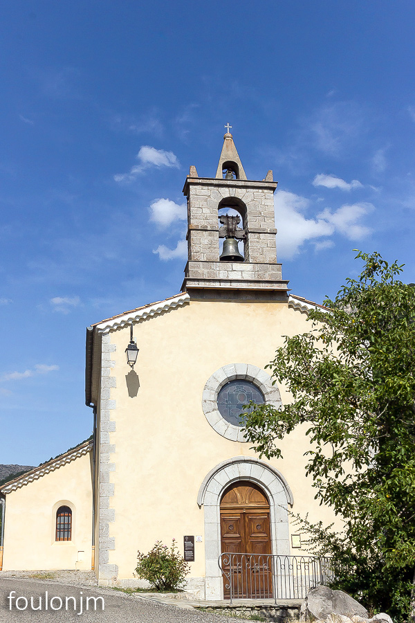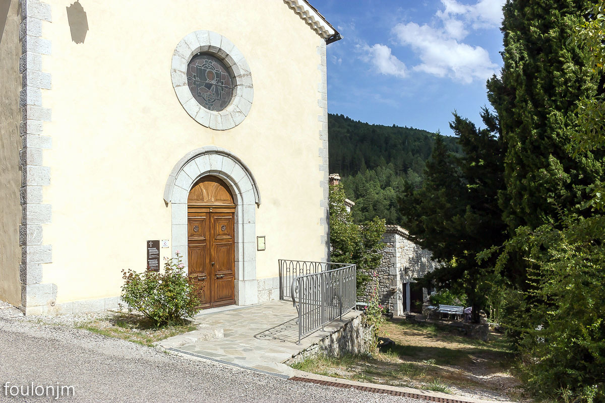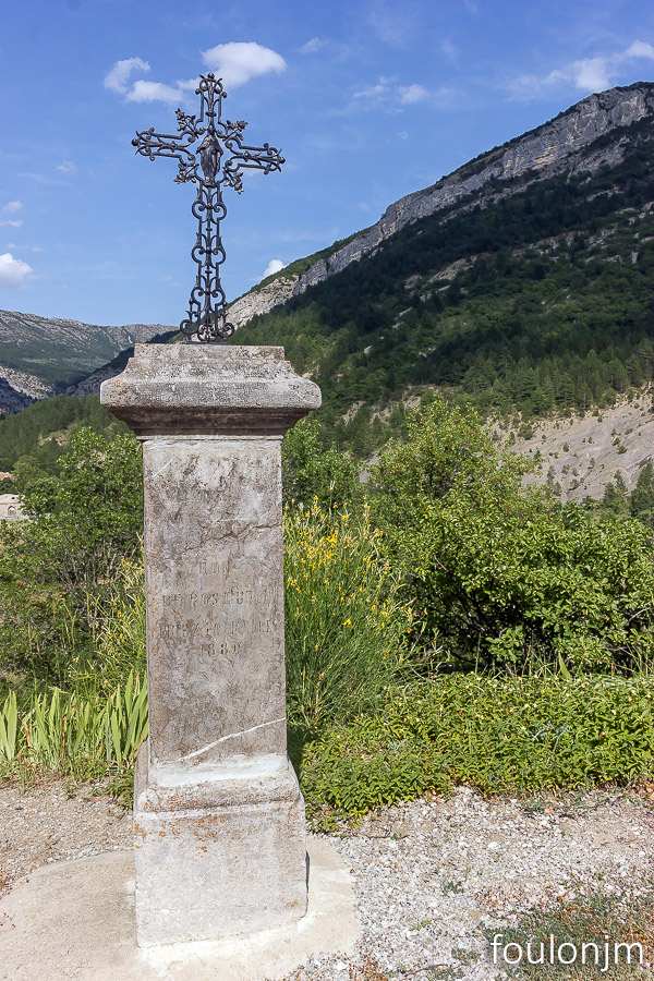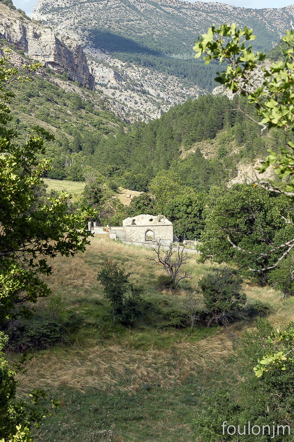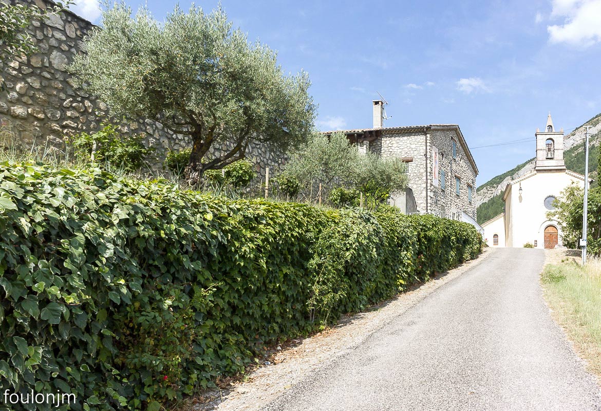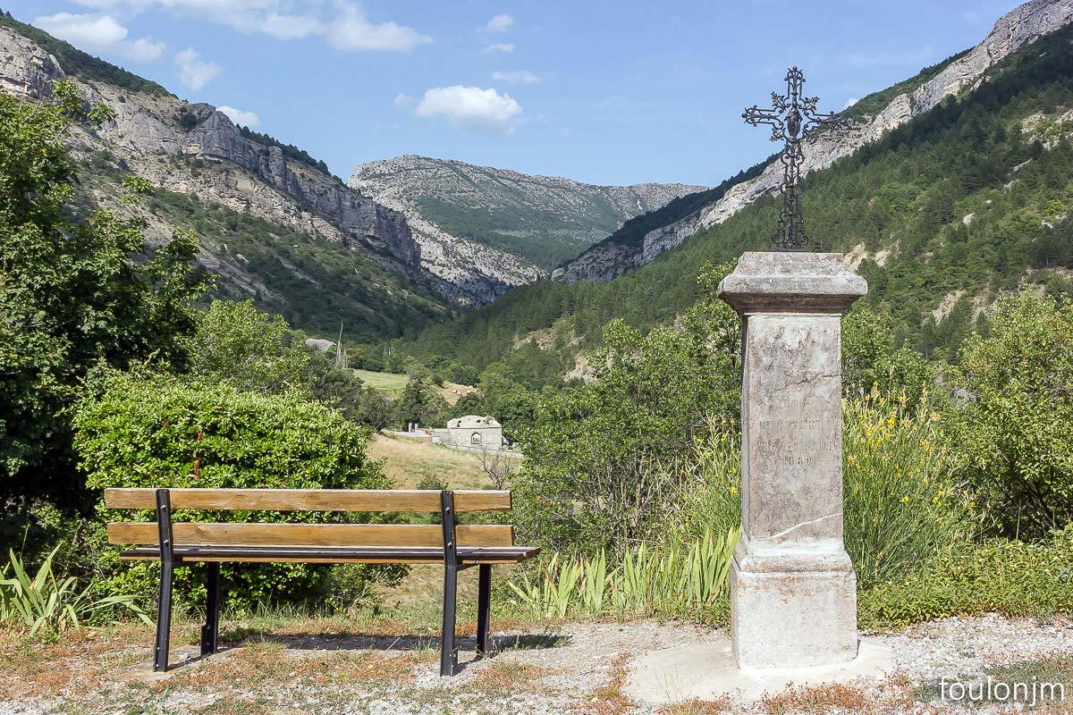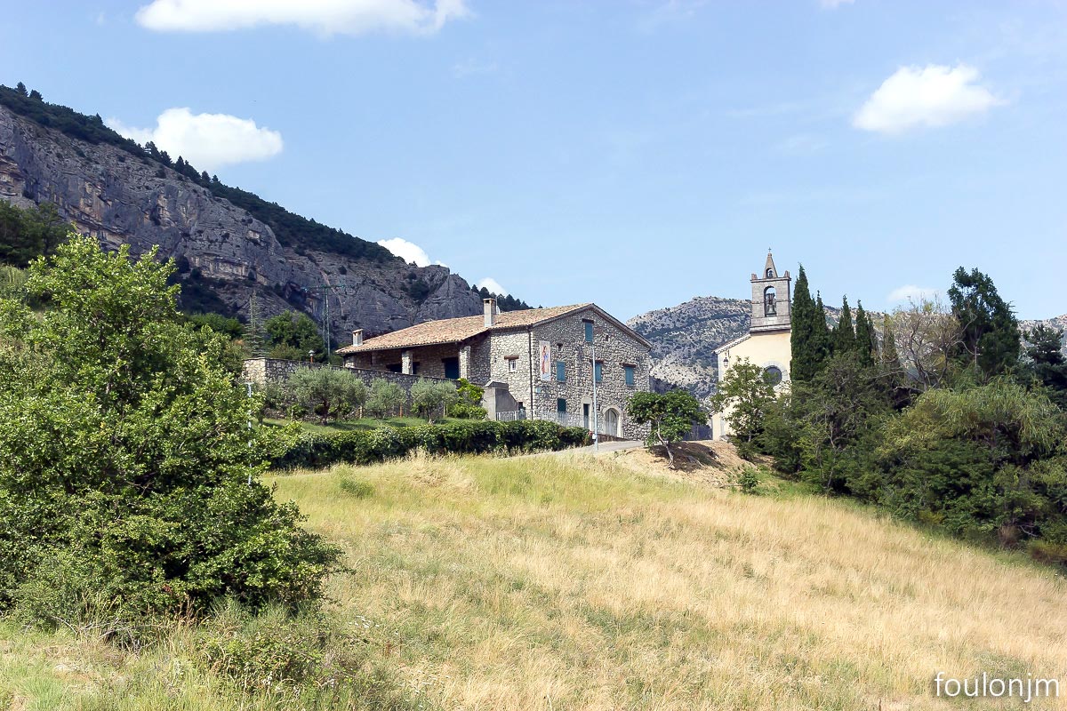 9Saint Génis - 05 Au loin, la montagne de chabre (ubac). A gauche, le lac du Riou. A droite, l'église de Saint Génis vue précédemment. Celle-ci est à l'écart du village à quelques centaines de mètres à l'Ouest ...