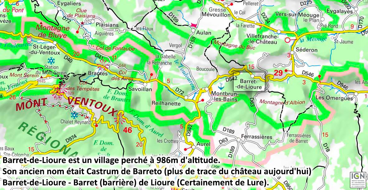 6Barret-de-Lioure - Drôme Nous allons maintenant nous rendre au Sud du village sur La Clastre, ancienne voix de communicaiton qui reliait le village entre autres au quartier du Genisseau ...