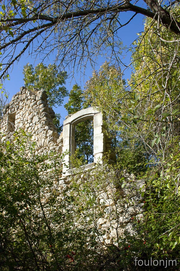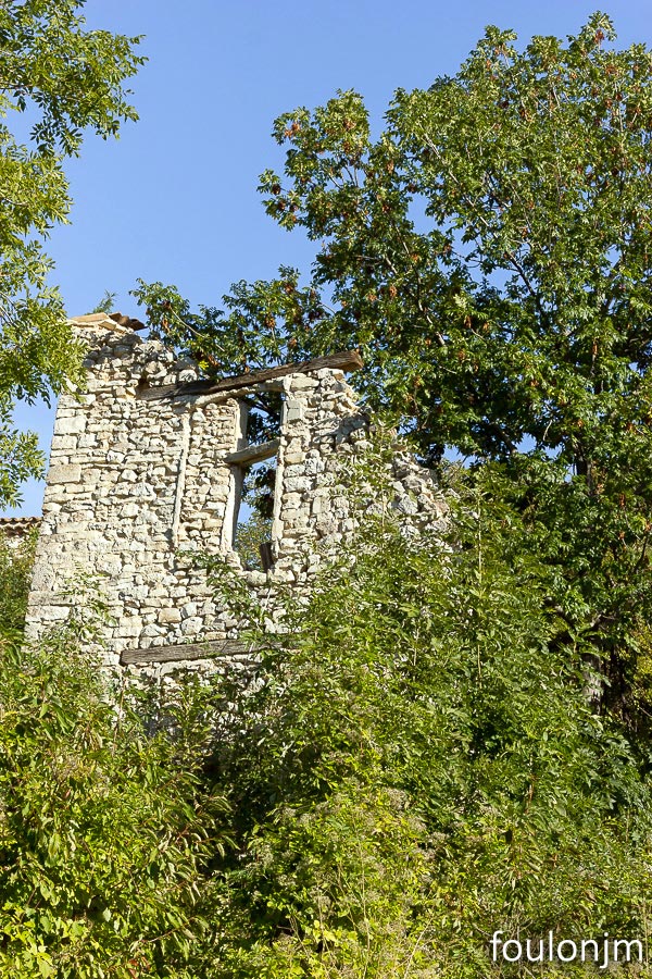 16Barret-de-Lioure - Drôme Autre vue sur la fenêtre en pierrre de taille. Impossible de s'approcher pour visiter la ruine. Trop de ronces et de broussailles ...