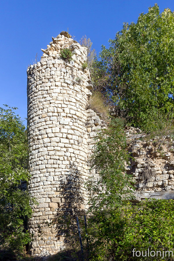 21Barret-de-Lioure - Drôme Vestiges du rempart. La tour Nord/Ouest et un morceau du rempart Ouest à droite ...