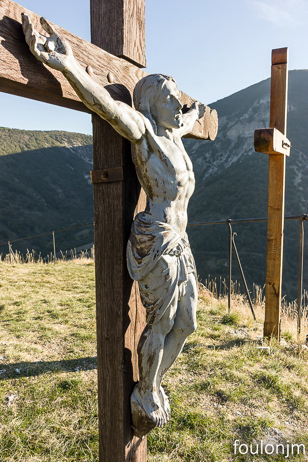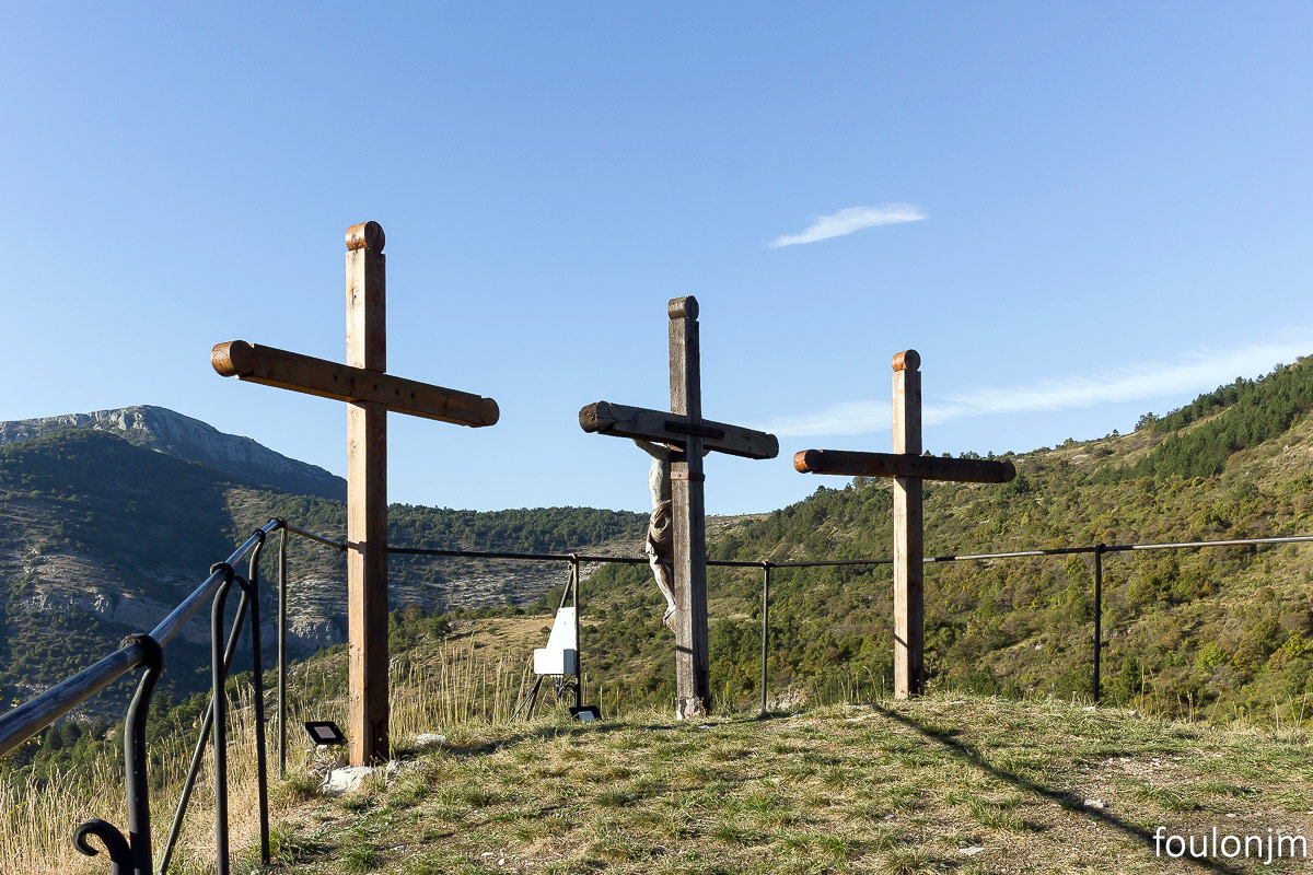 26Barret-de-Lioure - Drôme La croix centrale porte un Christ de fer. Les croix regardent vers l'Ouest ...