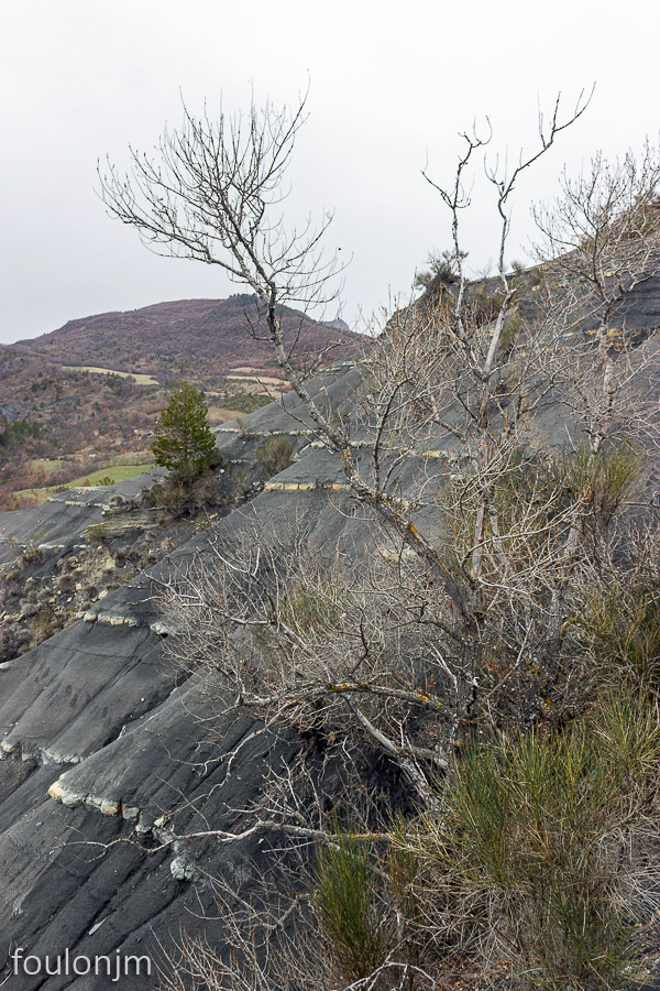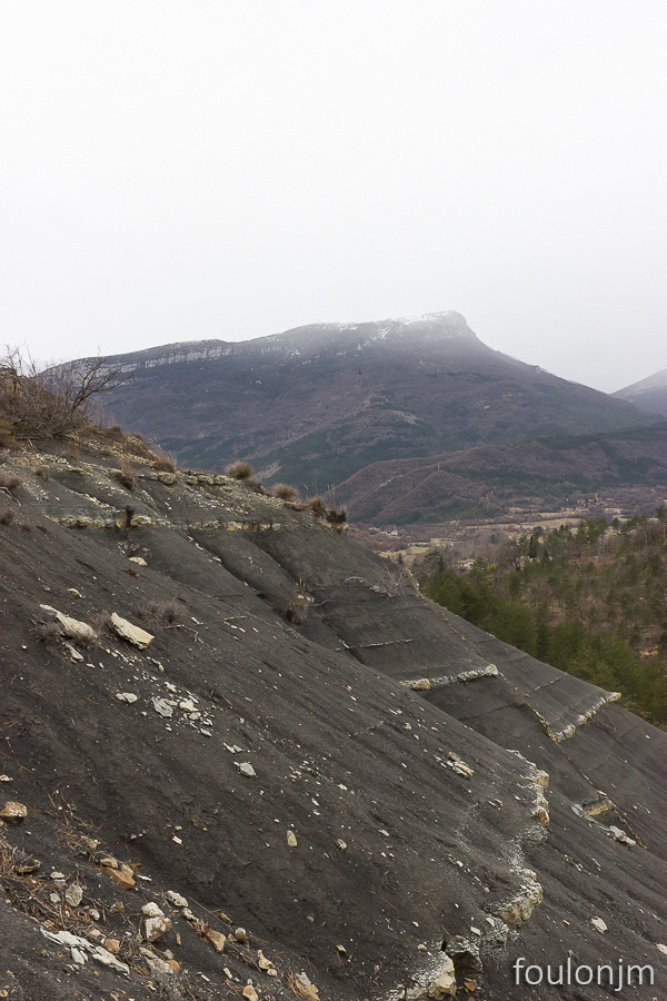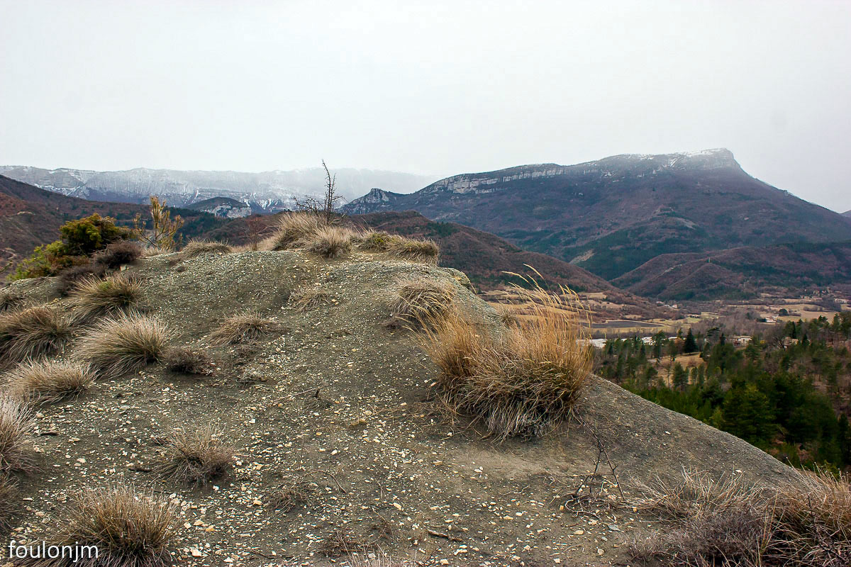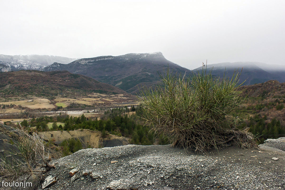 5Du côté de Bevons un jour pluvieux d'hiver Marnes. Au loin, la montagne de Saint Michel (767m)