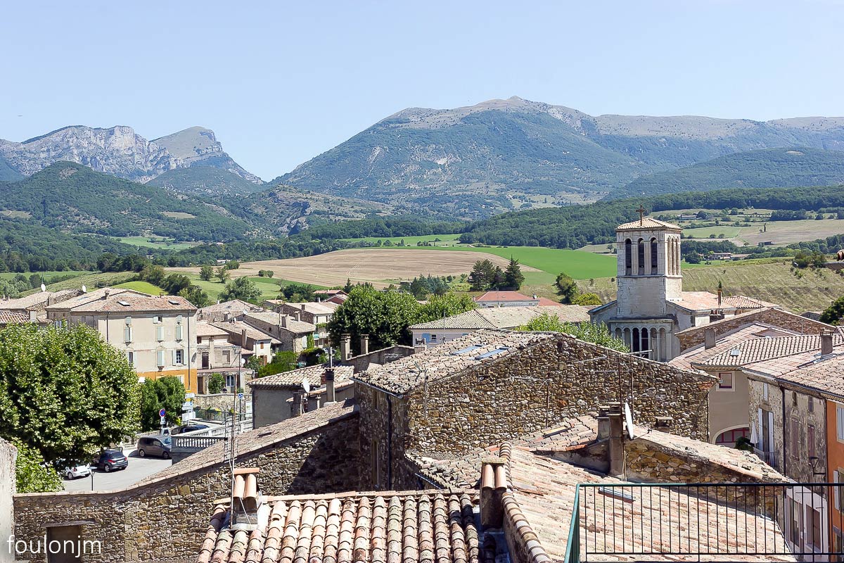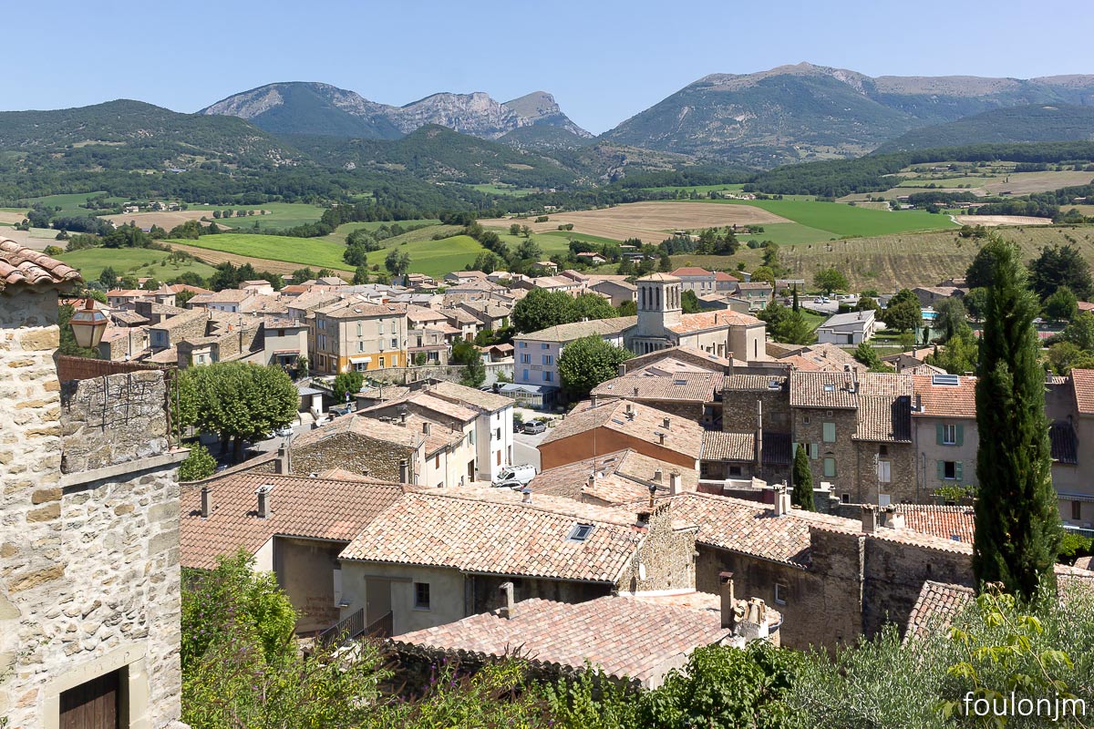 7Bourdeaux Direction le village médiéval et les ruines des deux châteaux. Au centre en haut, le beffroi (XIIIe)