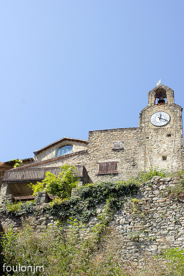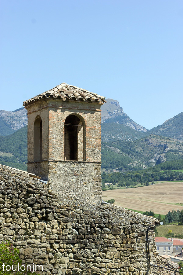 34Bourdeaux Retour dans le quartier de Viale (Partie médiévale de Bourdeau) - Le clocher de l'ancienne église qui sert aujourd'hui de salle d'exposition