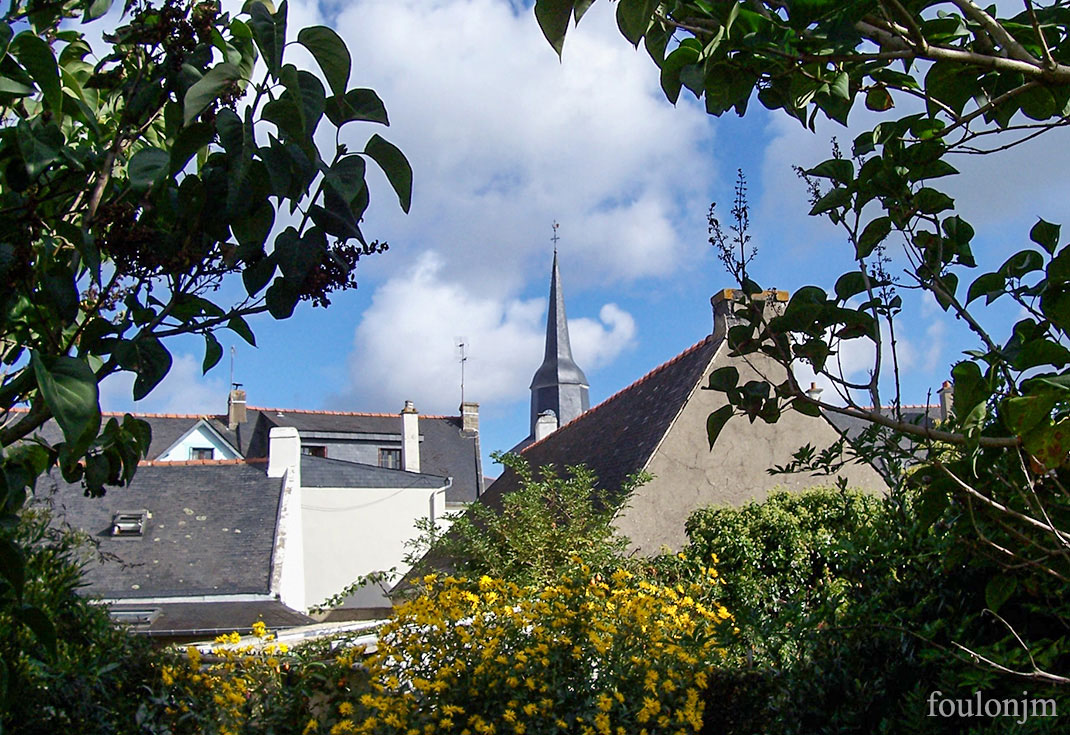 Vue sur les toits et le clocher de Locmariaquer