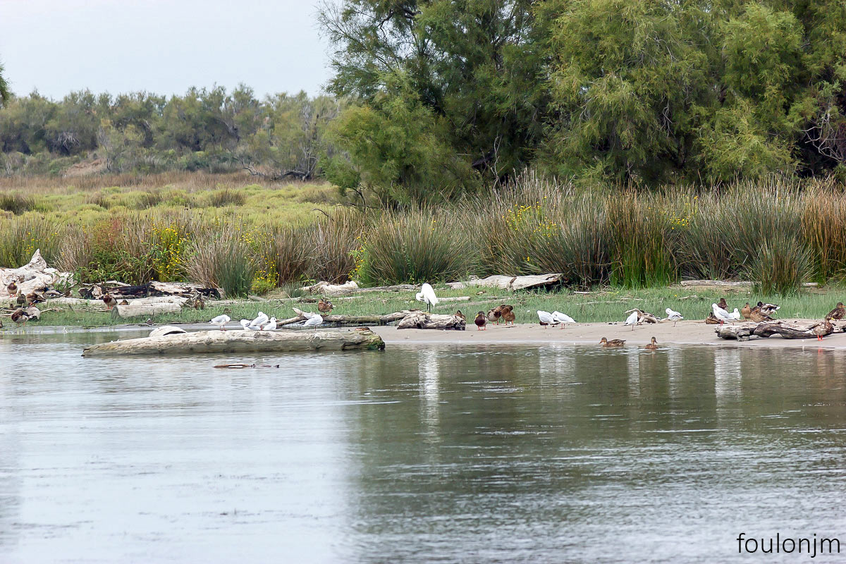 Canards, mouettes, hérons et autres sont présents en nombre sur les rives du Petit Rhône