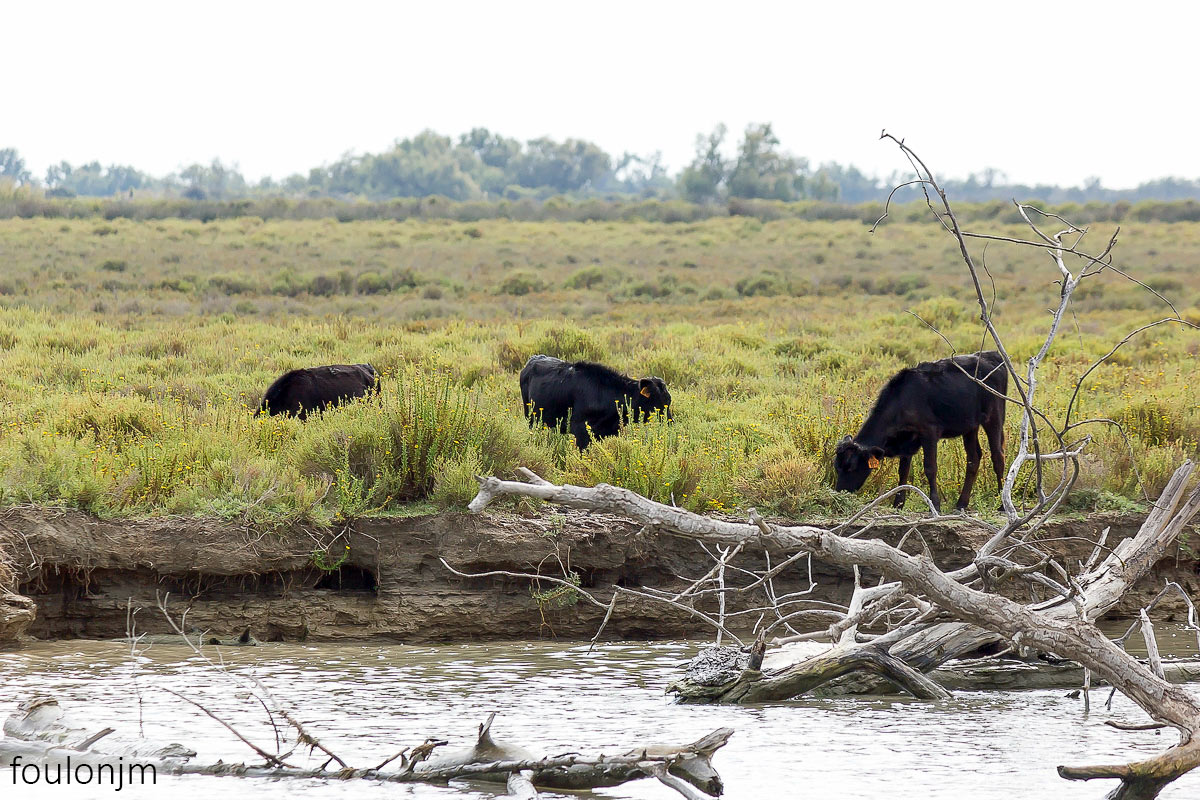 Taureaux broutant des salicornes