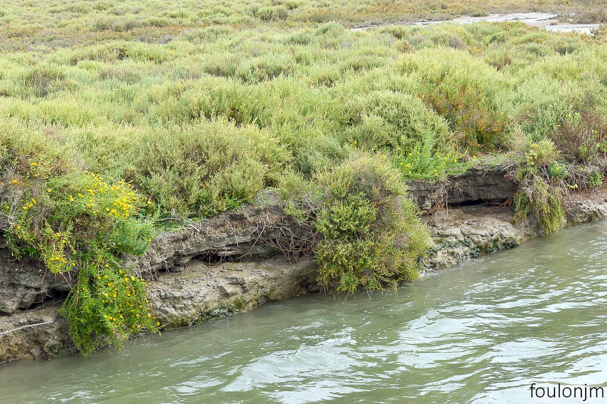 Tamaris, salicorne, bruyéres, ajoncs et roseaux sont les plantes majoritaires