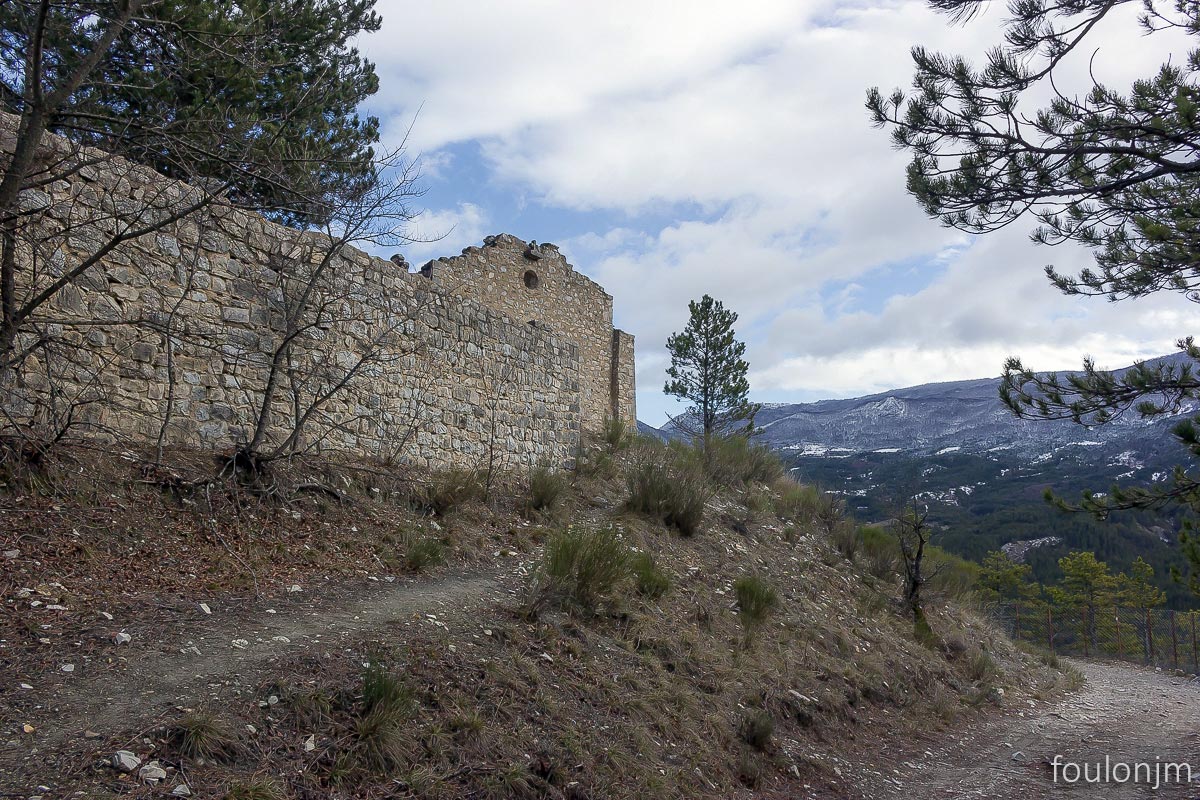 44Chapelle Saint Laurent (XIIe) - Barret sur Méouge Le mur de soutènement du cimetière et la chapelle