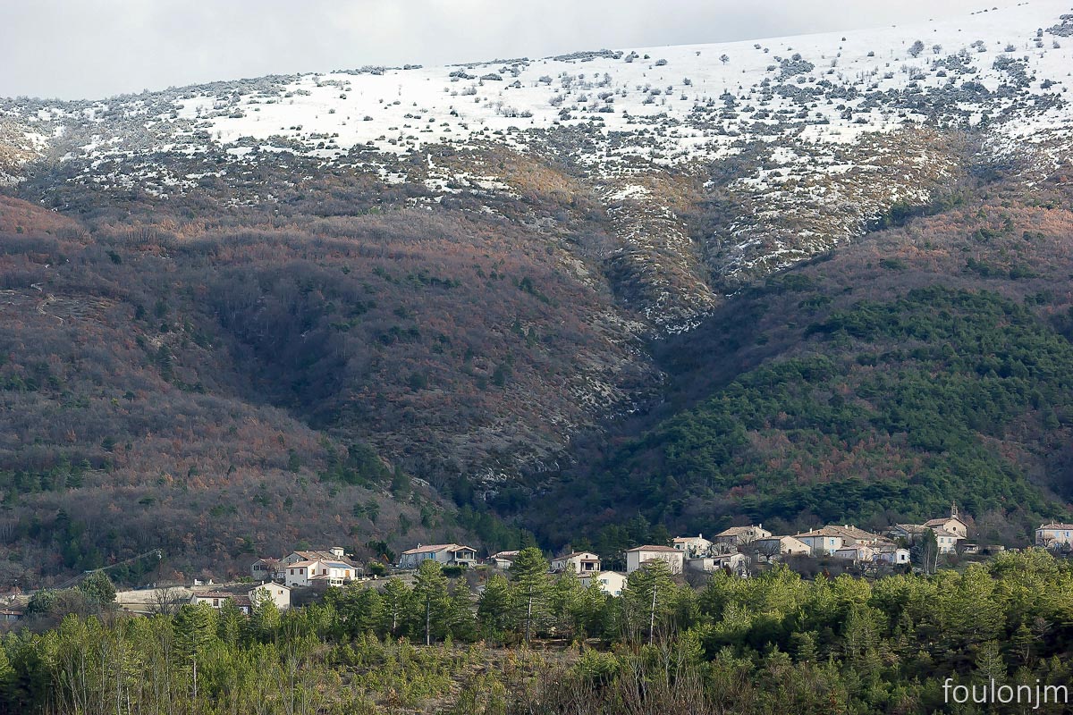 48Chapelle Saint Laurent (XIIe) - Barret sur Méouge Le village de Saint Pierre Avez et la montagne de Saint Cyr enneigée