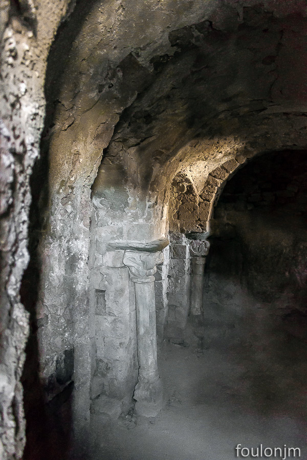 17Chapelle de Dromon - Saint Geniez Vue sur la crypte (VIIIème ou IXème siècle) à travers le soupirail.