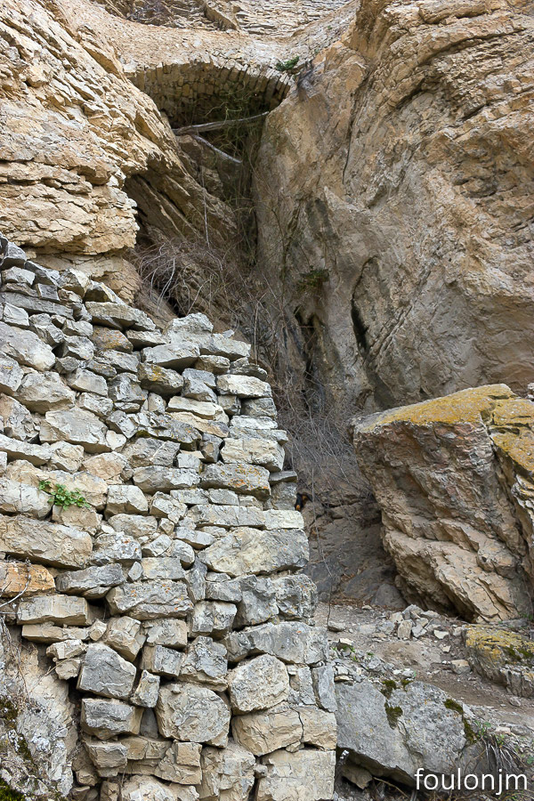 62Chapelle Saint-Pons - XIIe Nous approchons du but ! ... En haut, le petit pont sur la faille. La chapelle est juste à sa droite