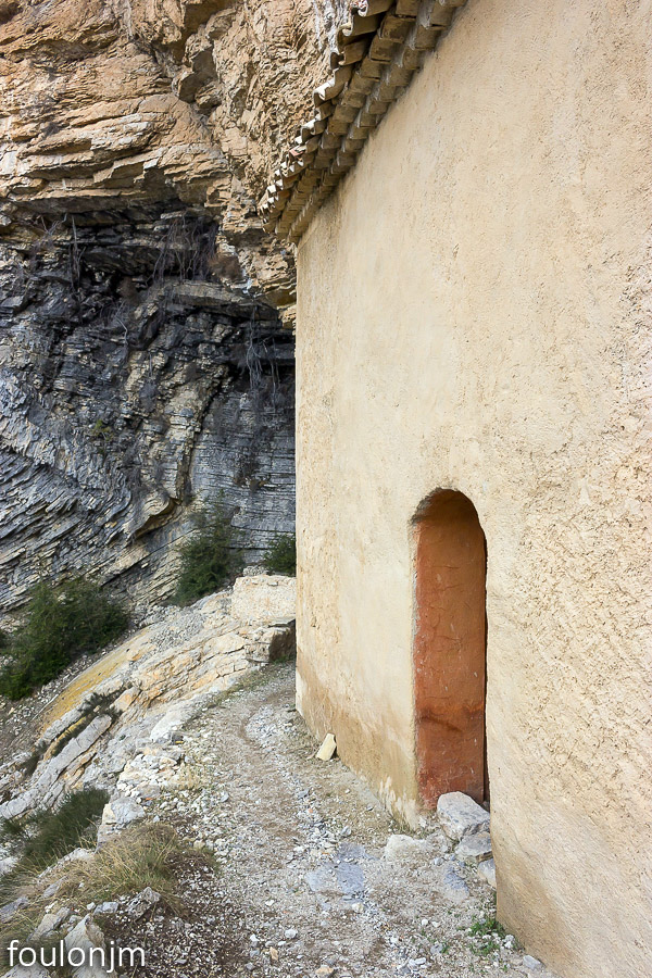 28Chapelle Saint-Pons - XIIe Un sentier permet de cheminer à l'Ouest de la chapelle en longeant la falaise