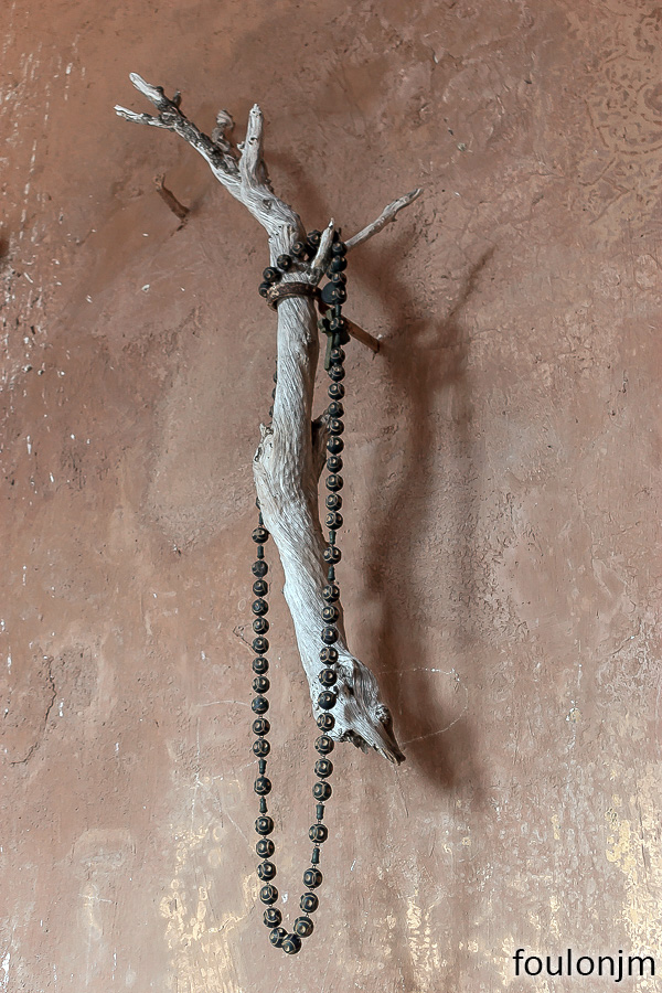 82Chapelle Saint-Pons - XIIe Sur le mur Est à droite de l'autel se trouve un morceau de bois sur lequel est accroché un grand chapelet de bois laissé par un visiteur